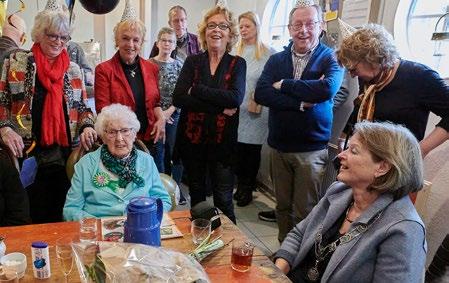 Bij de gezellige en zeer drukke dagbesteding “Op Lis” vierde mevrouw Rie van Ruiten op 23 januari haar unieke verjaardag. Een verjaardag die ook nog eens opgeluisterd werd met een gezellig informeel bezoek van burgemeester Lies Spruit, die deze bijzondere inwoonster van haar gemeente uitgebreid kwam feliciteren. Een leuk gebaar dat duidelijk door de jarige zeer gewaardeerd werd. “Ik vind het zo leuk dat de burgemeester bij mij op bezoek komt”, sprak zij enthousiast. Mevrouw van Ruiten is geboren in Voorhout in een gezin van 12 kinderen. Met een vader die een bloembollenbedrijf had en een latere echtgenoot die in de bollen