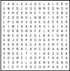 De woorden zitten horizontaal, verticaal en diagonaal in alle richtingen in de puzzel verstopt. Ze kunnen elkaar overlappen. Zoek ze op en streep ze af. De overblijvende letters vormen achter elkaar gelezen de oplossing.
