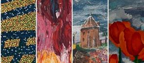 HILLEGOM n Bollenvelden kunnen op allerlei manieren worden weergegeven. Van een wazige kleur in de verte, zoals Pim Rusch deed, tot een collage van allemaal kleine tulpenschilderijtjes, zoals Ilse van Vliet het heeft weergegeven.