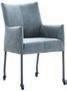 Comfortabele eet- of armstoel in microleder bora. Zwart metalen poten met skatewielen.