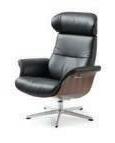Fauteuil ‘Time-out’ Designklassieker van Jahn Aamodt. Verstelbare rugleuning en hoofdsteun. Schaal in walnoot of leder. In diverse kleuren leder of stof.