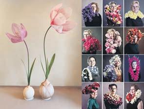 door die groots op te blazen. Kiki van der Hart haalt haar inspiratie van buiten en kleurt ringen om een glazen vaas als bollenvelden die in bloei staan. Beeldhouwster Lynne Leegte zoekt het verval, de laatste fase van bloei, in haar werk door gevallen tulpenblaadjes en tulpen uit de steensoorten albast en speksteen te hakken of schrapen. Sprookjesachtig zijn de door Alisa Lis (foto, links) van papier en textiel gemaakte metershoge bolbloemen waarbij fantasie en werkelijkheid door elkaar lopen. Lia Ootes gebruikt de abstracte vorm van een eenzame witte tulp in haar tuin en sjabloneert die tot prenten en legt zo de vergankelijkheid vast. Bij portretfotografe Marieke Treffers (foto, rechts) gaat het om twaalf vrouwen uit het bollenvak voor wie zij een kraag arrangeerde met bloemen uit het bedrijf waar ze werkzaam zijn. De aquarellen van schilder Frank Tromp de Haas van zijn eigen woonkamer met potten bolgewassen doen de tijd stil staan en het vergankelijk beeld behouden. Als een jaarlijkse traditie in de