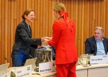 Medea Hempen, fractievoorzitter van het CDA, werd geëerd voor haar inzet voor sociale rechtvaardigheid en haar betrokkenheid bij zaken als het minimabeleid en de schuldhulpverlening. Olaf McDaniel: ‘Je denkt vooral in details. Een van de belangrijkste details zijn de hagen en heggen. Die hebben ook het landelijk CDA-programma gehaald. Ik zal je persoonlijkheid en verbondenheid missen. Dankjewel!’ Medea sprak zelf over de uitdagingen op het gebied van klimaat en biodiversiteit en benadrukte het belang van overheidsinterventie om deze crises aan te pakken. ‘Ik moet afhaken door gezondheidsproblemen. Met pijn in het hart verlaat ik de raad. Ik heb mijn werk als raadslid altijd met veel plezier gedaan. Dank voor de hele fijne samenwerking.’ Aangezien het CDA twee zetels heeft, resulteerde het vertrek van
