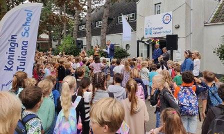 schiedenis van de school. Ook PROO-bestuurder Paul Dirkse en wethouder Herman Romeijn waren aanwezig. De twee hebben hun handtekening gezet op een speciale Koningin Julianaschoo jubileumvlag en ook een gebakje meegegeten met de leerlingen, het team en de ouders.