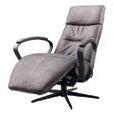 In leder, notenhouten armschalen. Maat M. Electrisch verstelbaar, 2 motoren.