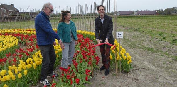 NOORDWIJK n Op een winderig stukje veld langs de Herenweg, bij Streekmuseum Veldzicht, werd donderdag 11 april het kunstwerk “Embedded” onthuld door wethouder Roberto ter Hark. Met het doorknippen van een lint met een gouden schaar opende hij het labyrint, dat direct in gebruik werd genomen door de aanwezigen.