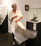 Met een zwierig gebaar openden de drie nichten en de achter-achter nicht van Siem van den Hoonaard de nieuwe tentoonstelling in Mu