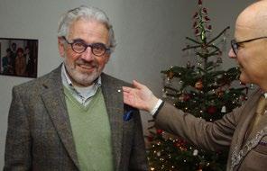 gezelligheid van zijn eigen woonkamer kreeg hij dus een dag later alsnog de penning, met inscriptie ‘Altijd paraat en dienstbaar’ overhandigd en de daarbij behorende ‘versiering’ opgespeld. Burgemeester Jaensch roemde Joop om de enorme maatschappelijke bijdrage voor Oegstgeest. “Je bent altijd benaderbaar en initiatiefrijk.” (WT)