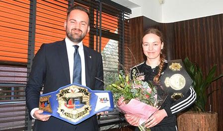 KAMPIOEN n Lovende woorden van wethouder Sonny Spek vorige week woensdag in het gemeentehuis. En terecht, want Gisèl Noort Zwaan (14) won de Europese titel kickboksen in het bantamgewicht. Op 26 november van vorig jaar wist zij deze tijdens het kickboksgala in de Youth Fight League in Amsterdam te veroveren door haar tegenstandster Safae uit Rotterdam te verslaan.