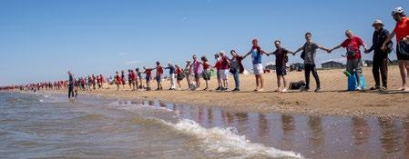 BEWUST n Het was afgelopen zondag een bijzonder gezicht op het strand: Een grote ketting van mensen, gekleed in het rood, liep gezamenlijk richting de kustlijn.