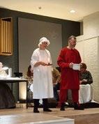 Op het podium zijn 4 personen bezig met kantklossen en boeten. Eén uit de groep geeft telkens uitleg over de getoonde kleding, leuk en soms hilarisch. Een man met de klink komt binnen, roept: “Zeg het voort…..Zeg het voort…… De uitdrukking: ‘wie het breed heeft, laat het breed hangen’ was van toepassing. Alle figuranten kwamen tot slot naar voren, onder een luid en warm applaus vergezeld met een amaryllis met een tak eucalyptus werd de klederdrachtgroep bedankt voor een geweldige leuke middag. Dinsdag 9 en woensdag 10 december zijn er de kerstvieringen voor de leden. | Foto: pr.