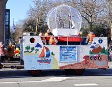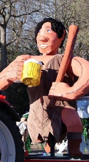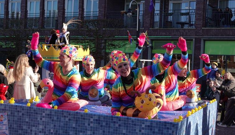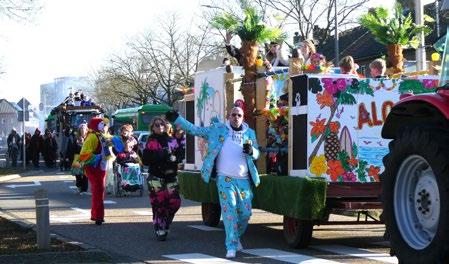 van den Berg. Hij voelt zich als een vis in het water wanneer hij de lovende reacties aanhoort over de ludieke creaties en constructies op de elf Carnaval praalwagens.