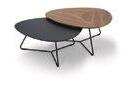 Salontafels ‘Twinny’ Met asymmetrisch blad. In diverse kleuren en materialen.
