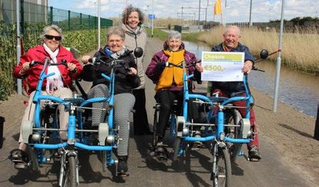 De vrijwilligers van Fietsmaatjes Teylingen waren duidelijk blij en verrast met de cheque. Op het mo ment hebben zij maar liefst 13 duo fietsen en één rolstoelfiets, waar mee ze er geregeld op uit trekken met hun cliënten. Volgens een van de vrijwilligers Ria van Leeuwen, die samen met haar maatje Gerda Sikkink bij de opening op een van de fietsen aanwezig was, worden de fietsen altijd enthousiast ontvan gen en beleven een groot aantal cli enten er plezier van. “Ik hoop dat ze wat leuks met het geld gaan doen voor ons allemaal, misschien eens een keer een uitje met alle fietsen bij elkaar, dat zou gaaf zijn”, aldus Ria van Leeuwen. Volgens haar maa tje Gerda Sikking is het altijd één groot feest om met de fiets op stap te gaan. “Het is een hele beleving. Ik