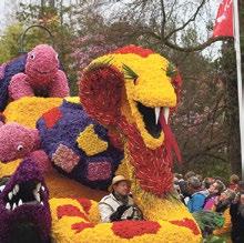 Van woensdag 19 tot en met zon dag 23 april is het mogelijk om van dit spektakel te genieten. Wanneer deze krant bij de meeste inwoners van de gemeente in de bus is geval len, zijn de opsteekdagen in volle gang. De praalwagens worden in de grote hallen aan de Rijksstraat weg in drie dagen tijd door hon derden vrijwilligers voorzien van voorjaarsbloemen.