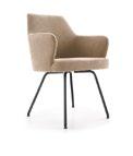 Comfortabele en volle zit- en rugkussens, sierlijke armen, metalen pootonderstel. In stof Regain