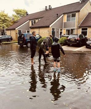 Een verstopte riolering kan men melden bij de gemeente en ondergelopen ruimten in huis, moeten zelf opgelost worden.