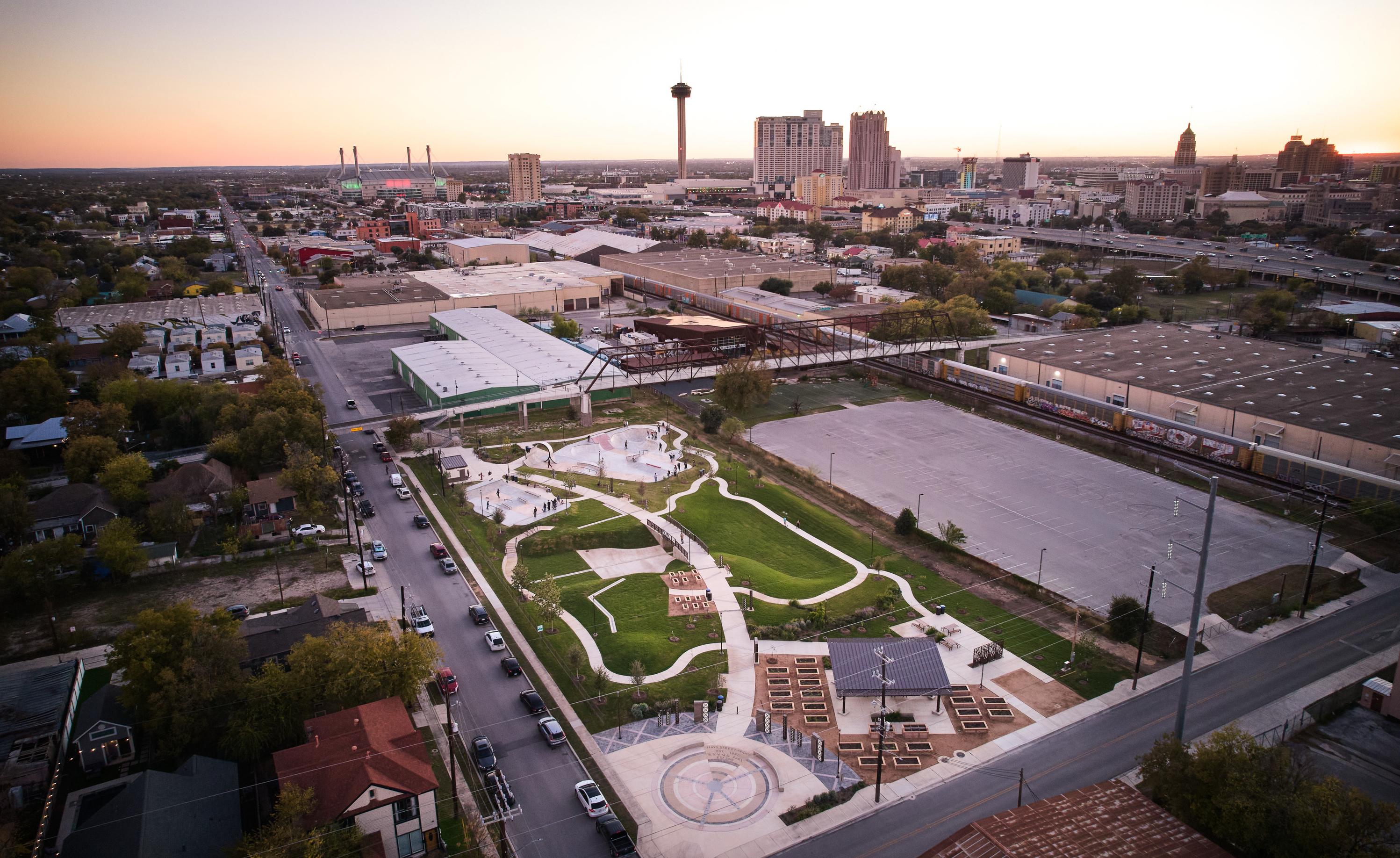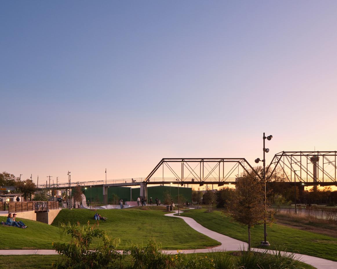 Berkley V. and Vincent M. Dawson Park transforms a community-driven vision into a cohesive, built public space that balances recreation, history, and neighborhood identity. Shaped through extensive public engagement, the park reflects local priorities while integrating diverse programs within a unified design language. Inspired by the nearby, historic Hays Street Bridge, custom materials, patterns, and detailing establish a strong sense of place. Signature features—including the skatepark, and urban garden—are seamlessly woven into an accessible landscape that supports gathering, play, and stewardship for users of all ages and abilities.