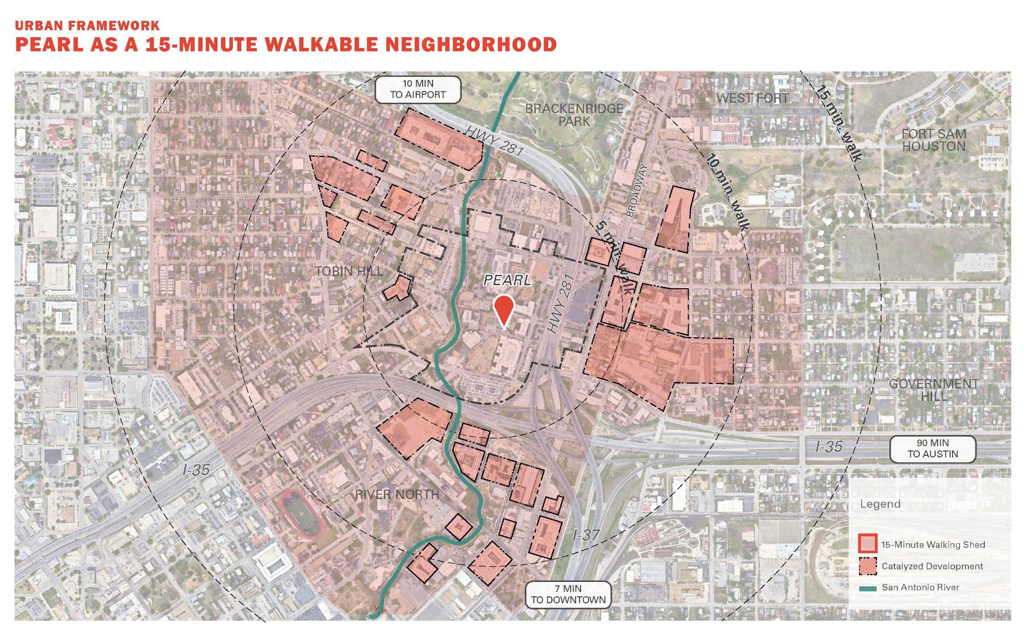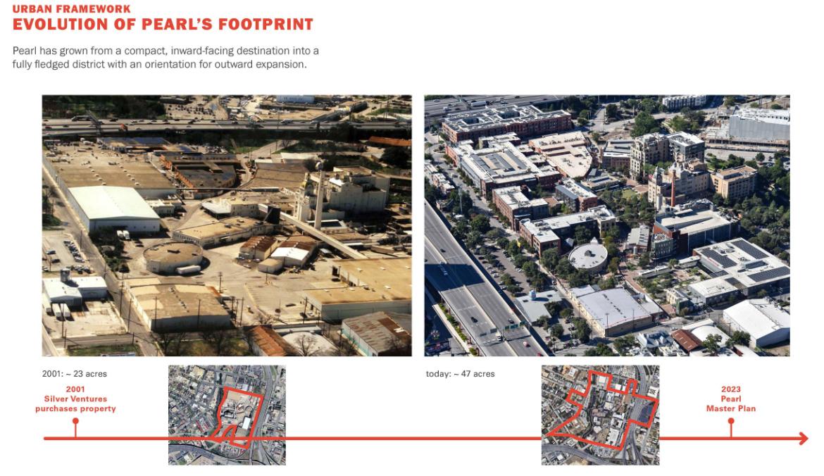 Over the past decade, Pearl has served as a living-breathing case study of successful mixed-use development both locally and globally. As Pearl plans for its future, strategies for expanding its footprint to further engage the San Antonio River, the Broadway corridor, and surrounding neighborhoods will extend Pearl’s reach and relevance with the intention of creating a more connected, walkable, socially inclusive, and economically diverse environment. The master plan serves as a north star for achieving the next phase of ambitions with innovative vertical mixed-use, missing middle housing, shared parking and multi-modal mobility.