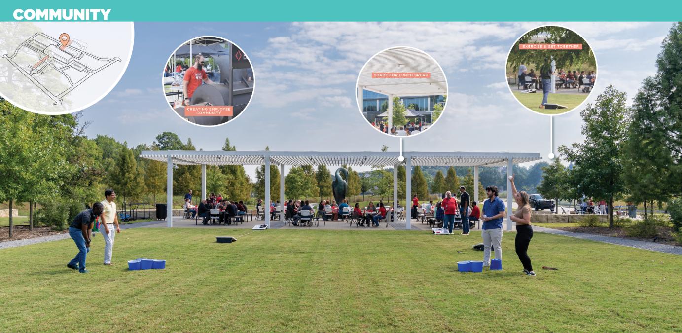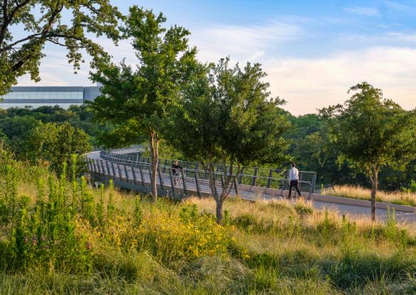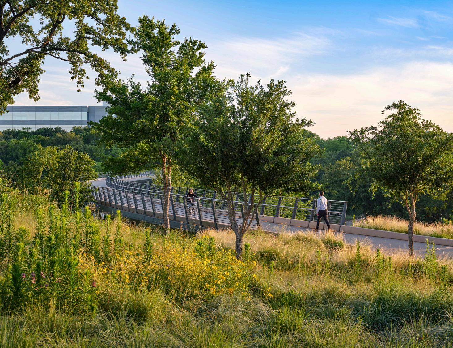 This 258-acre campus reclaims the vanishing Texas Blackland Prairie with a sustainable design that fuses native ecology with workplace innovation. Two distinct districts are united by a multi-modal spine with walking trails, bike paths, and electric shuttles that invite movement and wellness. Restorative outdoor spaces blur boundaries between indoors and out, while ponds and dry creeks choreograph stormwater and cool the site. By shifting from car-centric planning to a pedestrian-first experience, the campus becomes a living ecosystem where people, wildlife, and the Texas landscape thrive together in a resilient, regenerative environment.