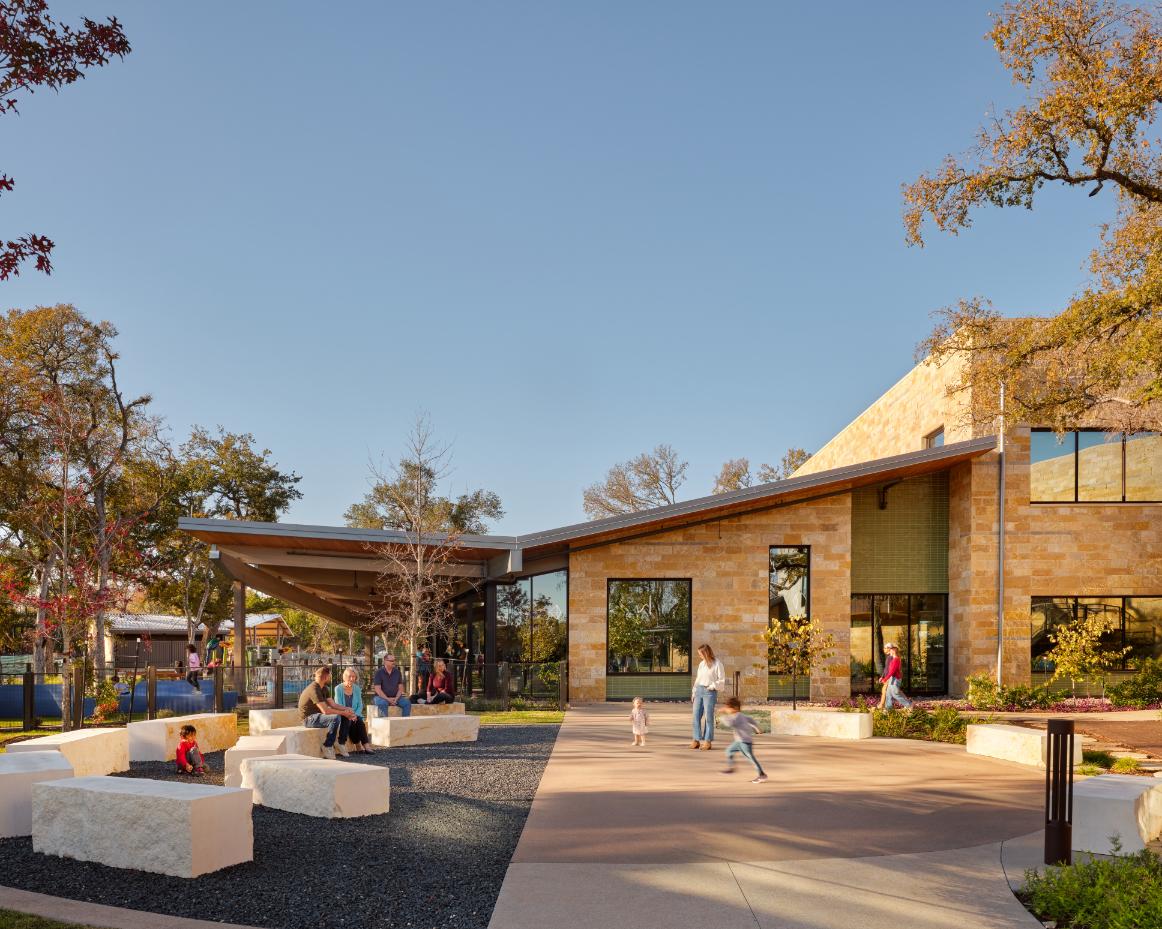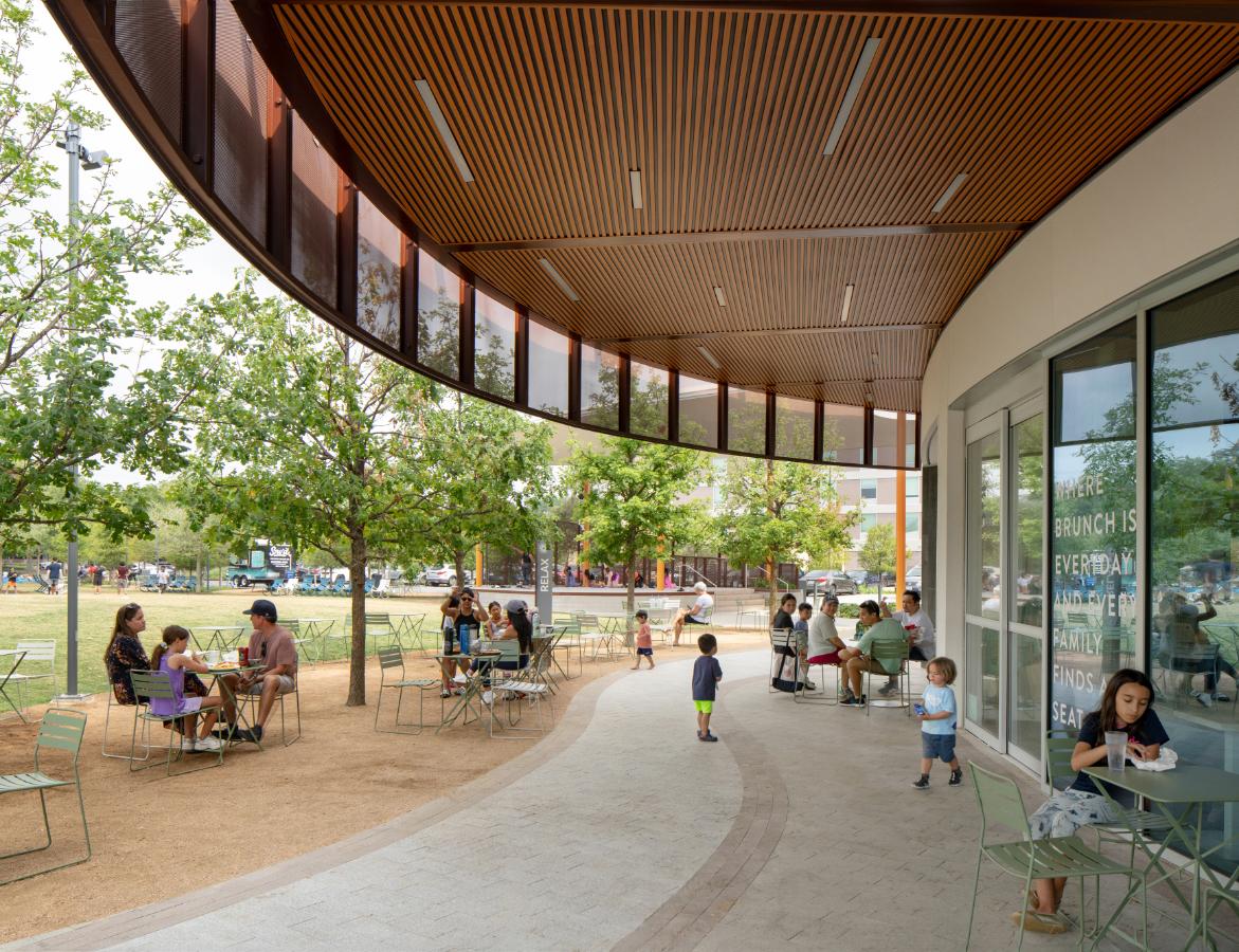 The Bell District Master Plan establishes a new civic heart for Cedar Park, repairing a long-standing divide caused by highway infrastructure and restoring walkability, connectivity, and civic identity. The district’s inaugural projects, a new Public Library and Bell Park, were intentionally conceived as a unified civic landscape to serve as a catalyst for social, economic, and environmental revitalization. Designed as a community living room, the library extends learning, gathering, and discovery into the outdoors through integrated green space and trails. Together, the park and library foster inclusion, ecological resilience, and a vibrant, pedestrian-focused town center.