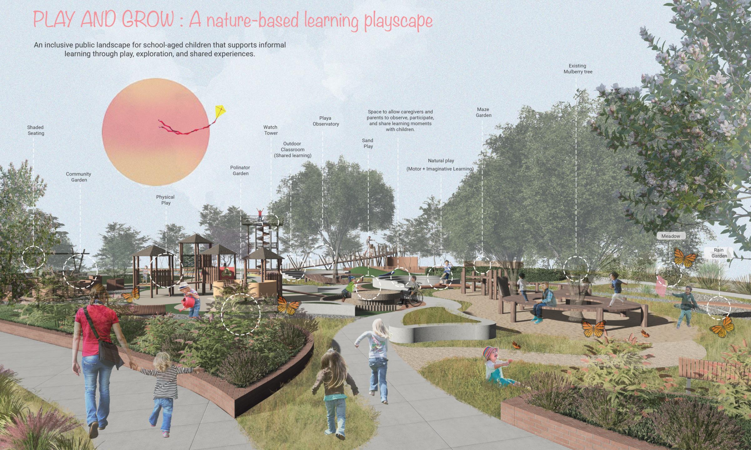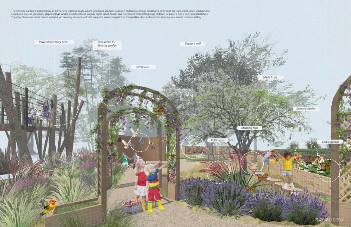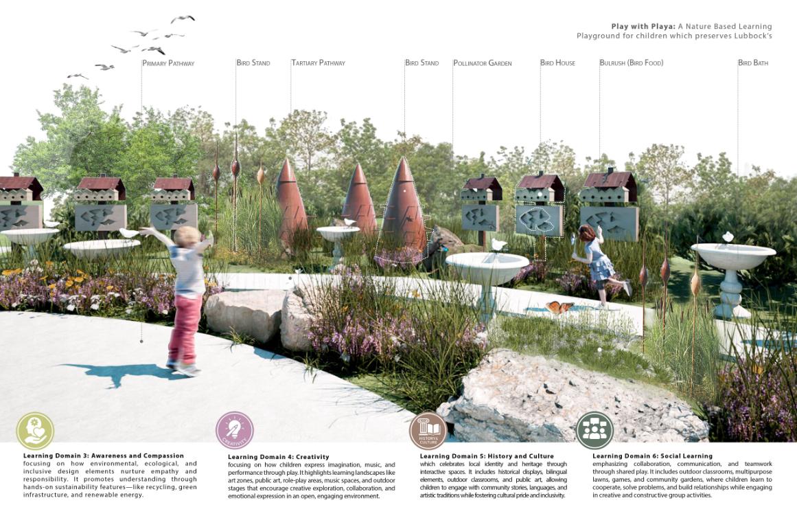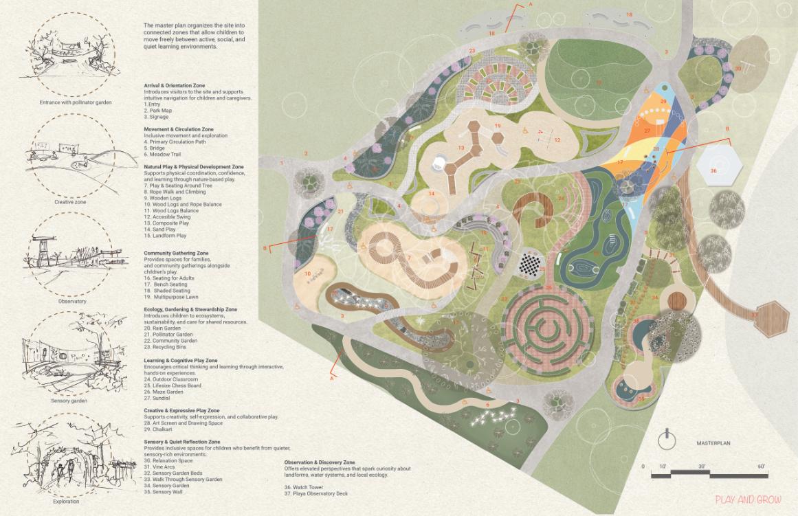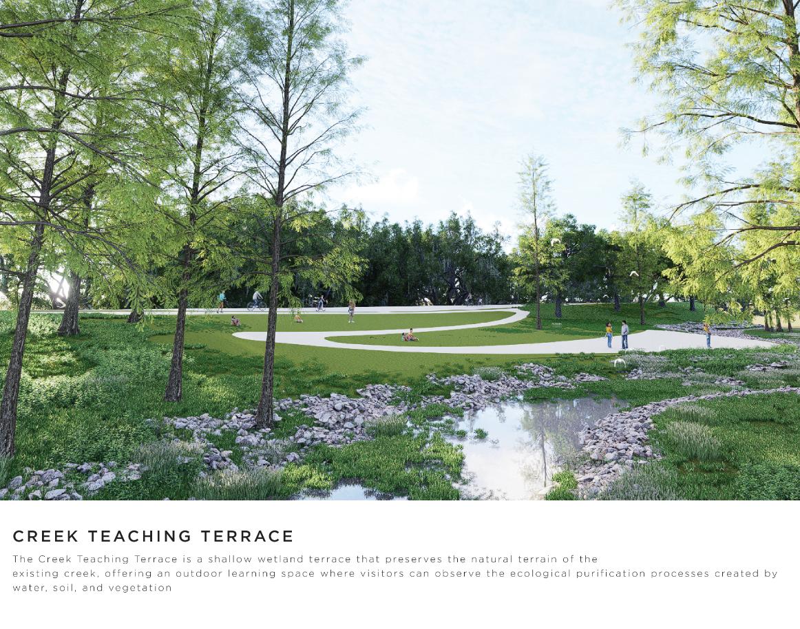Ladera transforms a flood-prone site along Salado Creek into a living arboretum that connects people, landscape, and water through ecological restoration and nature-based stormwater design. Rooted in regional ecology, the project embraces seasonal flooding as a defining feature, allowing water to slow, infiltrate, and support native plant communities. Terraced wetlands, bioswales, permeable surfaces, and shaded woodlands create a layered public landscape that balances education, recreation, and conservation. Ladera is award-worthy for its clear environmental vision, integration of hydrology and habitat, and its ability to translate ecological processes into a meaningful and culturally grounded public experience.