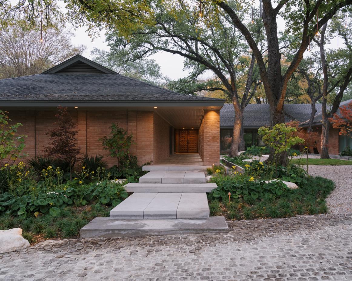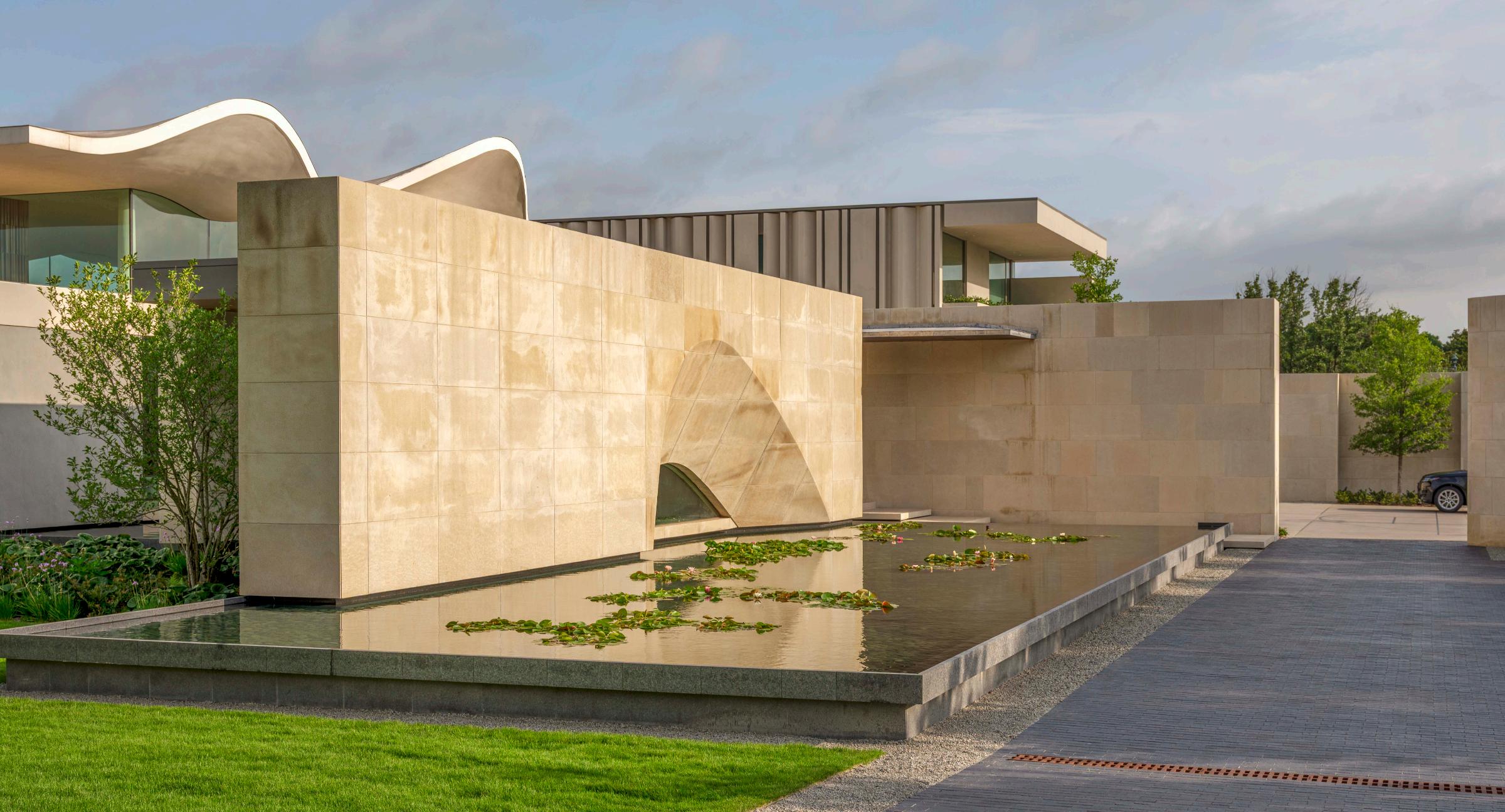 The Casa de Ondas project was conceived for a 2-acre parcel of what was formerly a portion of the famed Crespi Estate in Dallas, Texas. The name, conceived from the home’s wave form roof, also applies to the significant biological reflection pool that hugs the front of the home and swimming pool on the back side of the primary living spaces. The stately contemporary home is uniquely sited to maintain a large heritage live oak, orienting the primary interior and exterior living spaces towards a western grove of more heritage trees along the property line.