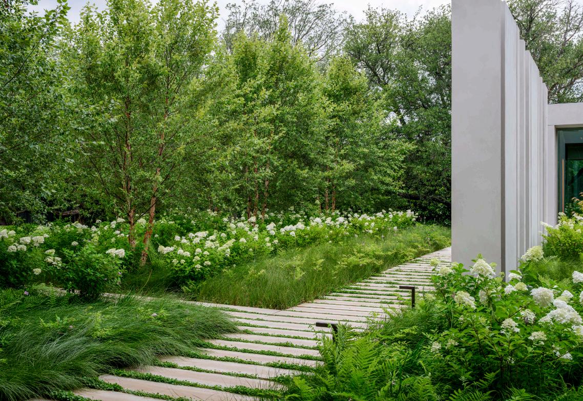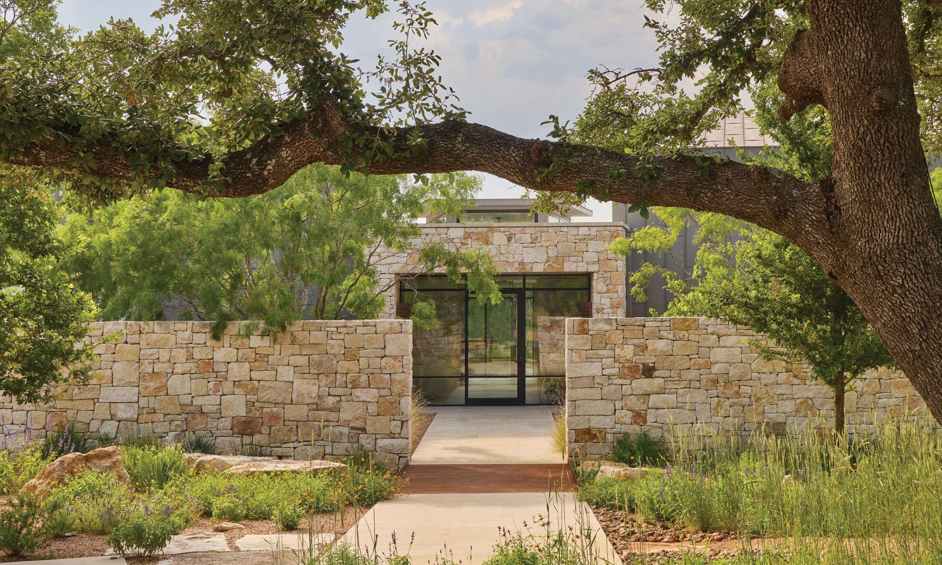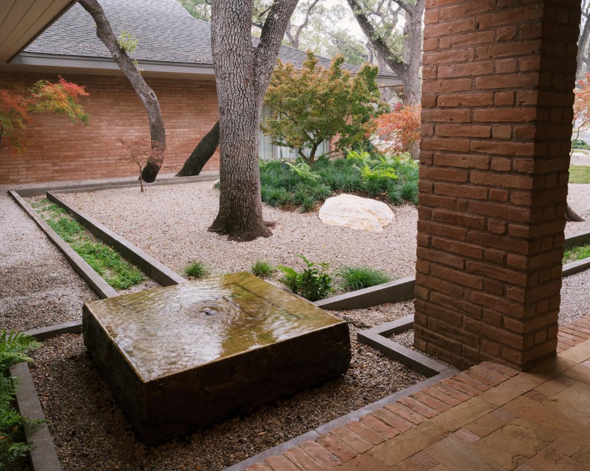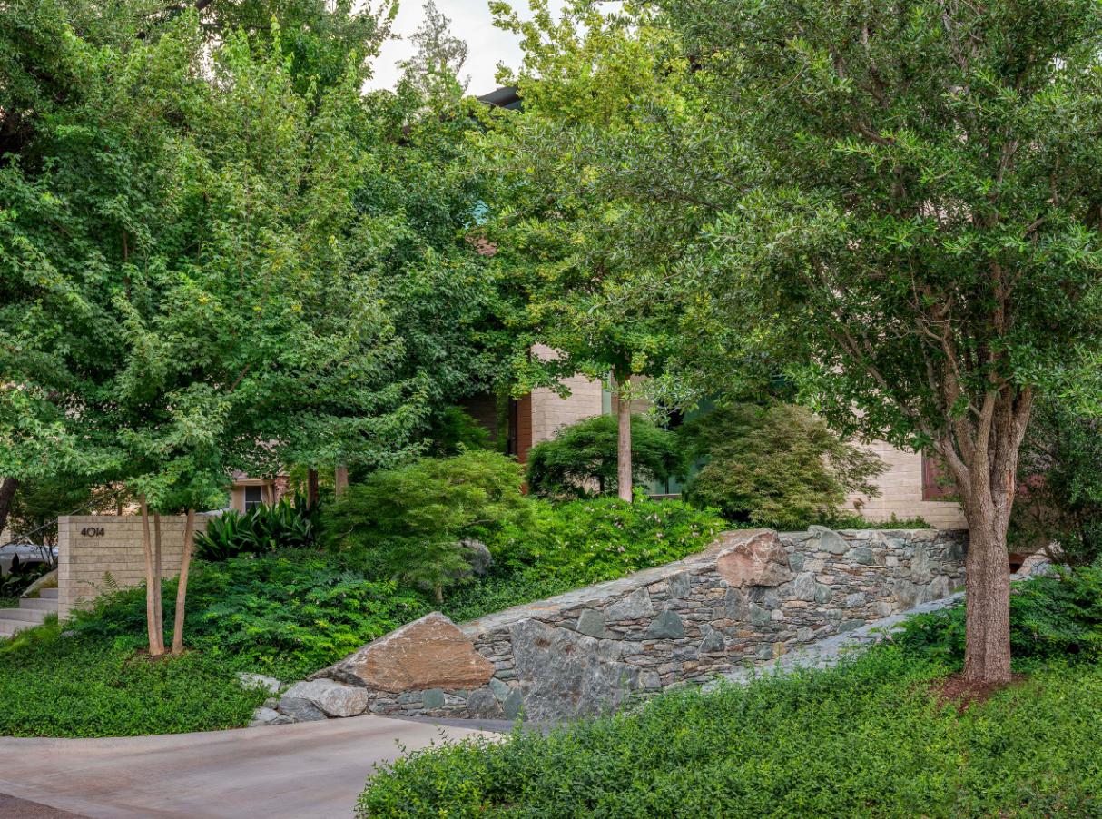 Stonebridge is a new, single-family residence in the Turtle Creek Neighborhood of Dallas. As a 0.19-acre “micro-site”, the landscape design is an exercise of precision craftsmanship. The home and garden holistically intertwine to make the limited space feel much more expansive. The design evokes an aesthetic of a modern Japanese garden. Sharp, verdant textures contrast the cool gray stonework utilized for walls, boulders, and paving. The house feels tuck-away compared to its neighbors while hiding intricate details as if they are easter eggs purposely camouflaged until a passerby stumbles upon.