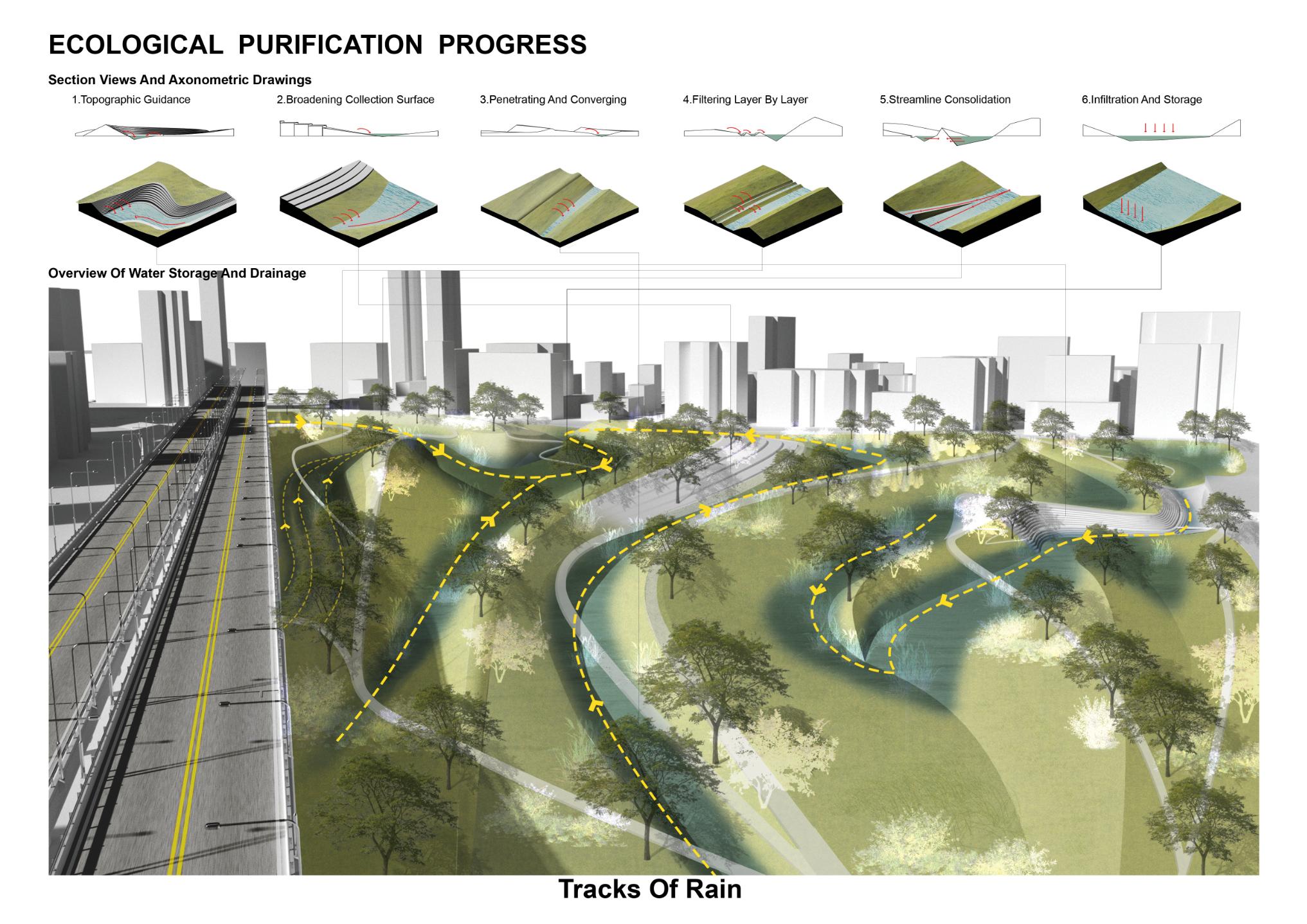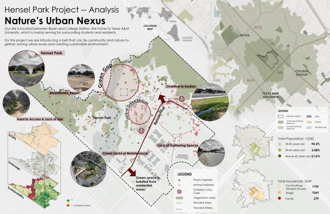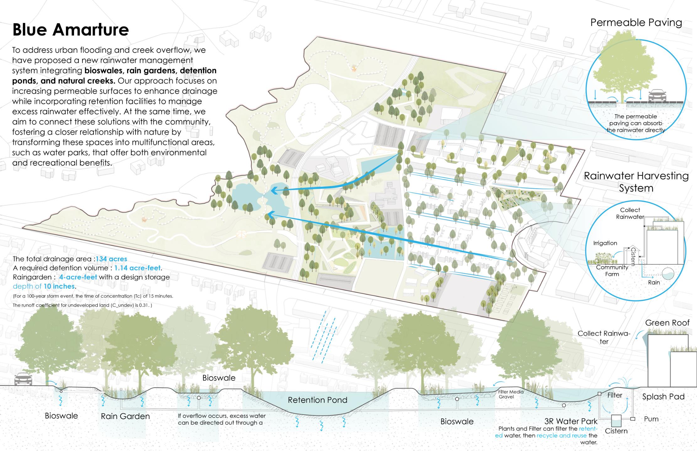 CityPlace reveals the beauty of utility through an expressive green infrastructure that makes water management visible. Spanning 1,800 acres, the plan integrates mixed use districts, corporate and healthcare campuses, neighborhoods, and extensive parks and trails. A Low Impact Development approach unites water supply, storm drainage, and wastewater treatment, preserving over 290 acres for recreation while protecting forest habitats and the Spring Creek watershed. At its heart, a 60 acre pedestrian focused district features eight interconnected ponds engineered for 100 year flood events, transforming stormwater detention into lakes, waterfalls, boardwalks, and diverse public spaces.