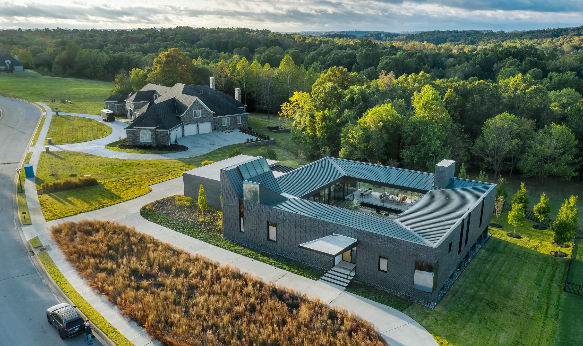 This residential landscape draws inspiration from the grassland ecology of Northwest Arkansas, a stark departure from the unsustainable lawns of the surrounding golf course community. Plantings of native grasses provide a dynamic setting that changes dramatically through the seasons, while also reducing water consumption and sinking carbon deep into the soil. Based on a Roman courtyard house, the building faces inward, privileging the central landscape that lies at the heart of the project. A series of terraced plantings lead from the courtyard down to a garden of switchgrass bounded by an existing woodland.