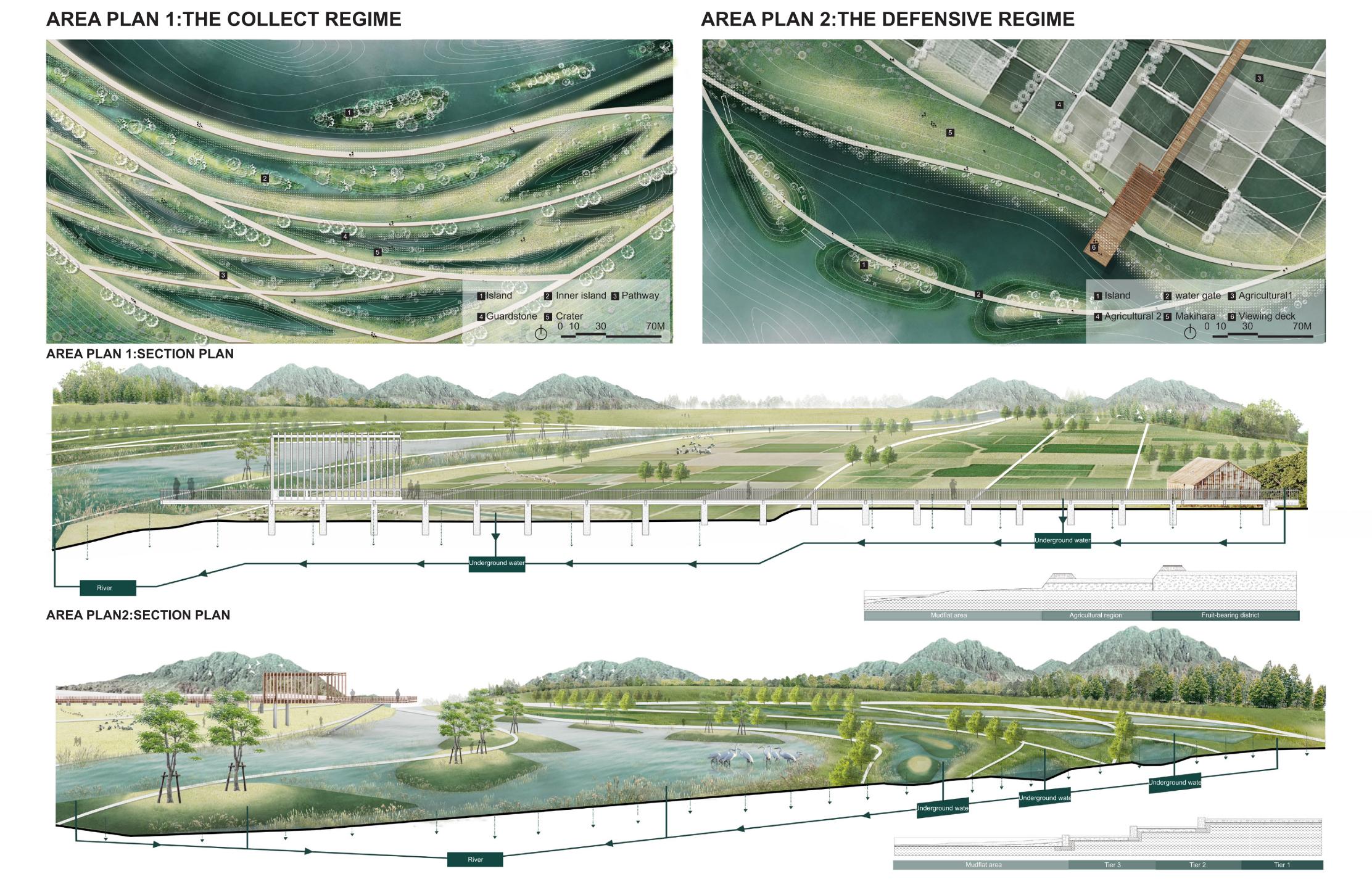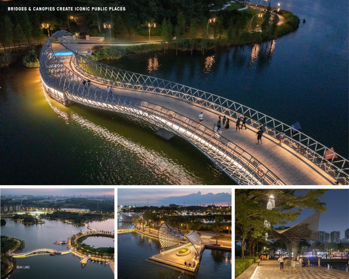 BoAi Lake reconfigures a fragmented landscape of disconnected fish ponds into a contiguous urban lake and civic waterfront. The project restructures former aquaculture infrastructure as climate-adaptive landscape infrastructure that integrates flood resilience, ecological restoration, and continuous public access. Through stabilized water levels, reconstructed shorelines, wetlands, and a layered network of promenades and public spaces, the lake functions simultaneously as a hydrologic system and a vibrant civic landscape. Today, BoAi Lake serves as a shared environmental, cultural, and recreational centerpiece for the surrounding community.