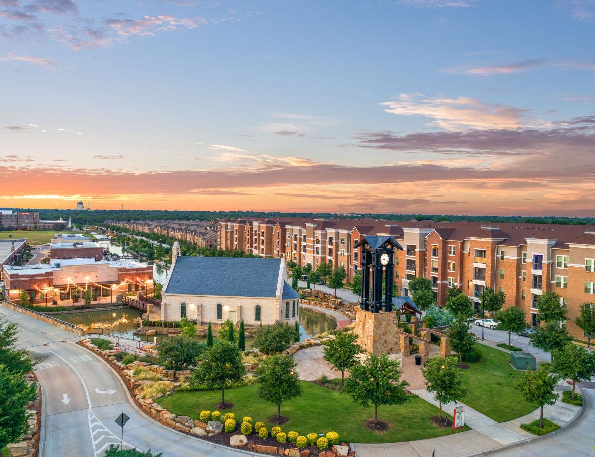 The River Walk at Central Park transforms 159 acres in the heart of Flower Mound, Texas into a vibrant, pedestrianfocused destination. Designed to connect commercial, office, retail, residential, hospitality, and medical spaces, the development is woven together by open spaces and parks. At its core, the River Walk channel flows alongside a linear park that links gathering areas and event spaces. Natural and created features, pedestrian-oriented streetscapes, and inviting amenities create a dynamic environment that supports residents and visitors while blending community life with thoughtful design.