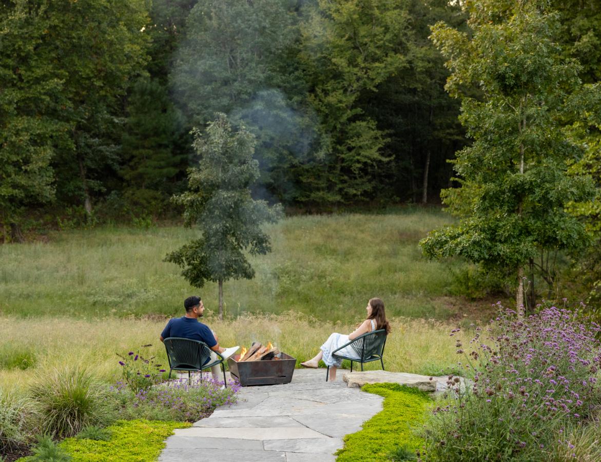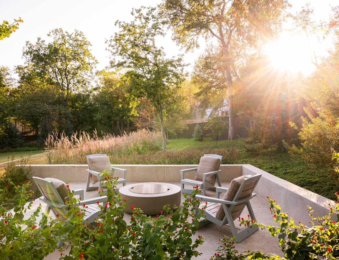 At Rose Branch, the landscape establishes the framework for living within the East Texas woods. The design prioritizes topography, views, connection to the native landscape, and seasonal changes to shape outdoor spaces that feel both purposeful and seamless with the architecture. Native grass meadows, locally sourced stone, and carefully scaled interventions create a strong relationship between architecture and land. Rather than competing with the surrounding environment, the landscape reinforces it, offering low-maintenance systems, meaningful outdoor rooms, and a refined material palette that supports daily use while preserving the site’s natural character.