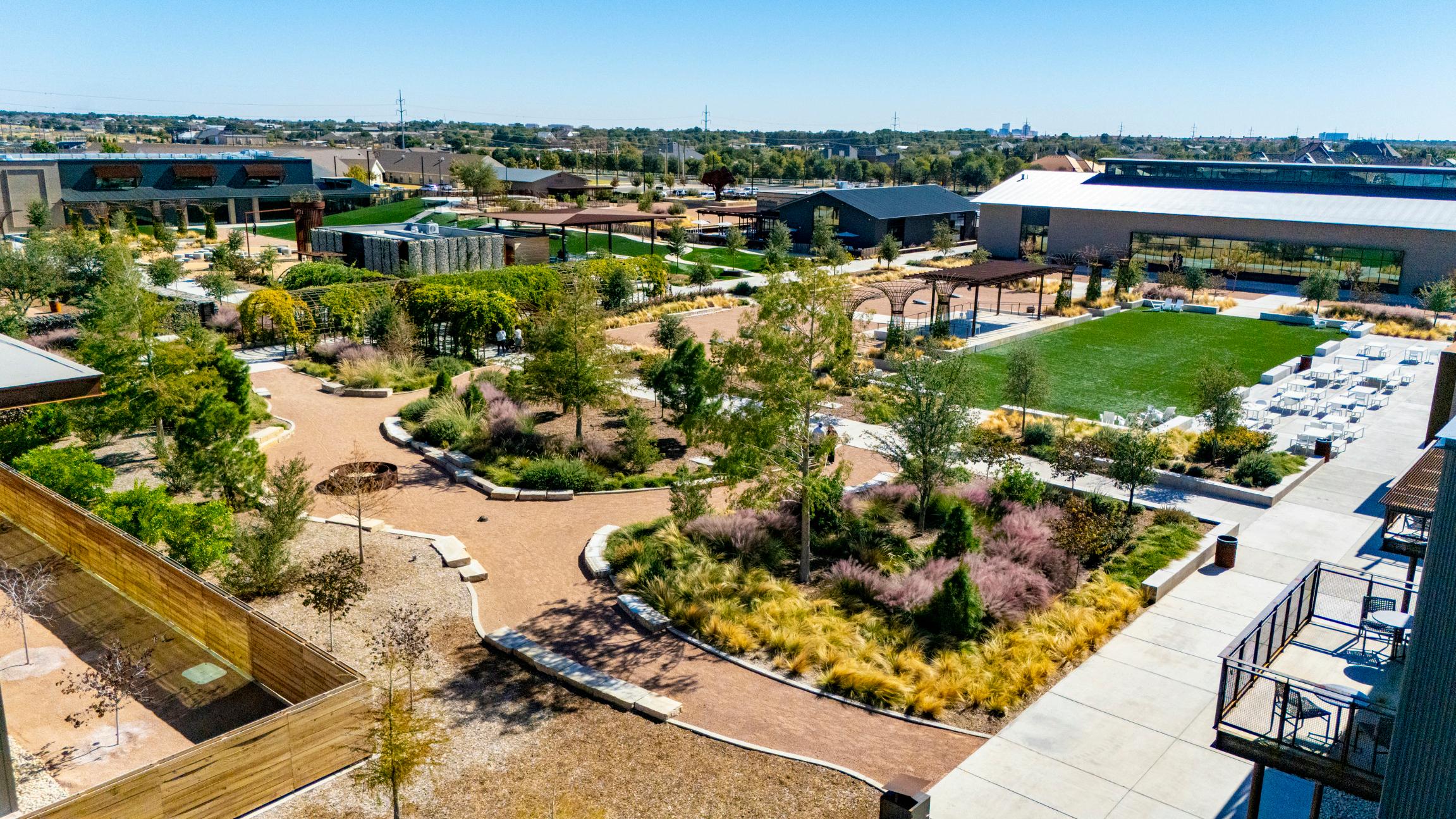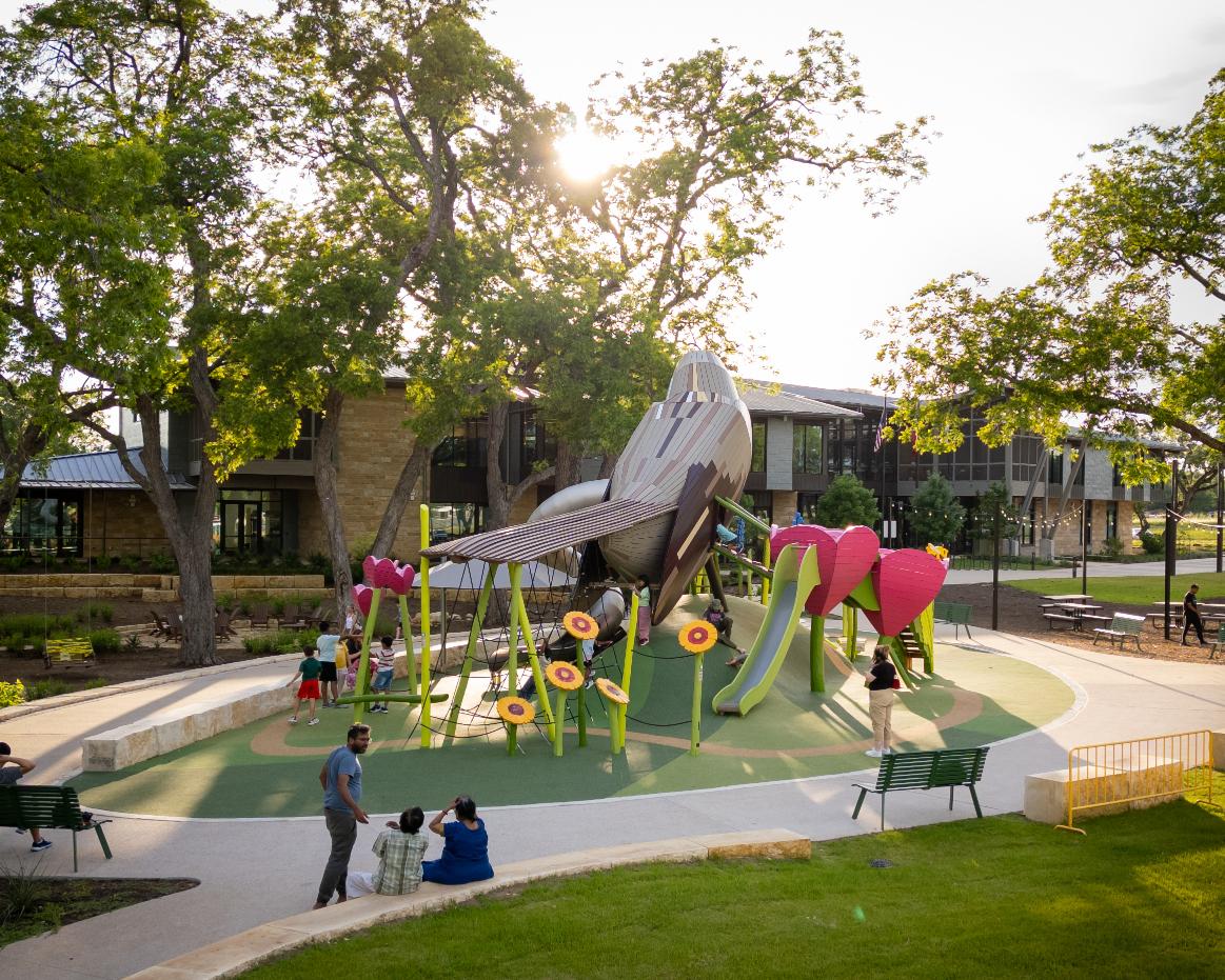 Summit Center is a premier commercial development anchored by a four-acre destination park surrounded by office, retail, and dining facilities. For Summit Petroleum, the opportunity to build a new headquarters also meant setting a precedent for quality outdoor public space in Midland, Texas. With parking and vehicular access located at the development perimeter, pedestrian experience is the priority. The central park includes multiple high points, an event lawn, fire pit grove, active play areas, and a central snack shack. Since opening in late 2024, the development has hosted numerous public events.