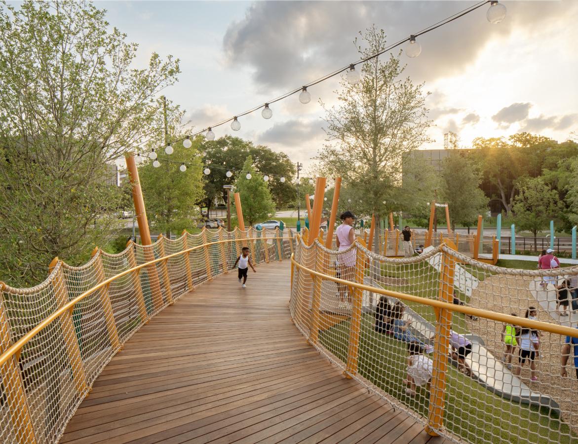 Located in West Houston, this 3.8-acre park delivers essential open space to a neighborhood long under served by parks. Funded through a Chapter 380 economic development agreement, the park’s resilient design integrates stormwater management and native planting strategies for a sustainable landscape that responds to local environmental challenges. Conceived as a flexible framework for active urban life, the park offers diverse recreation opportunities and community-based programming. Beyond addressing park scarcity, it has already catalyzed reinvestment in the Westchase District, underscoring its impact on neighborhood revitalization.