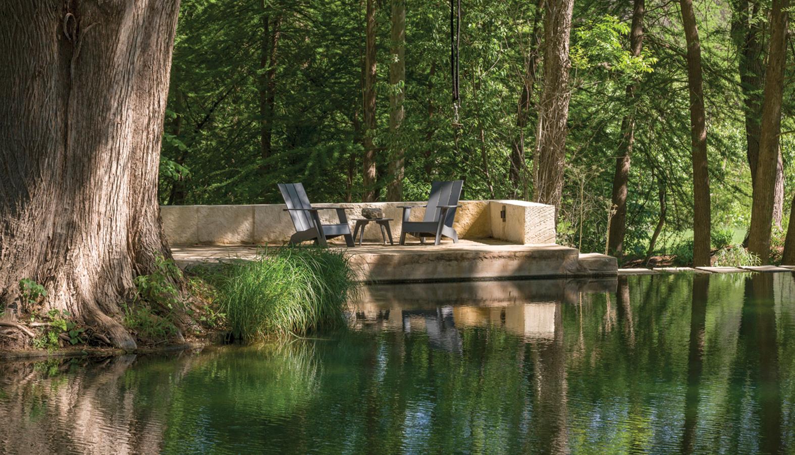 The revitalization of this historic ranch creates an active, verdant landscape integrates and showcases the site’s existing hydrologic systems. Situated at the convergence of a natural spring and creek, the landscape design was born out of the efficient direction and capture of water, reestablishing vital riparian habitat and reducing vehicular activity on property. Old ranch roads and footprints of former barns now give rise to native vegetation that cleanses rainwater, protecting waterways while immersing users in the natural beauty of Texas Hill Country ecology.
