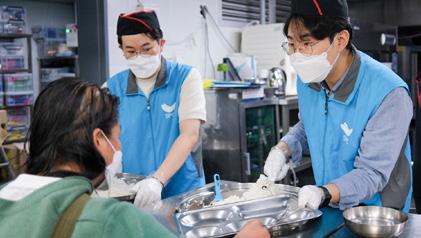 우선 SPC그룹 임직원들은 경기도 성남시 노숙인 무료 급식소 ‘안나의집’ 에서 노숙인 500여명을 대상으로 배 식 활동을 진행했다.
