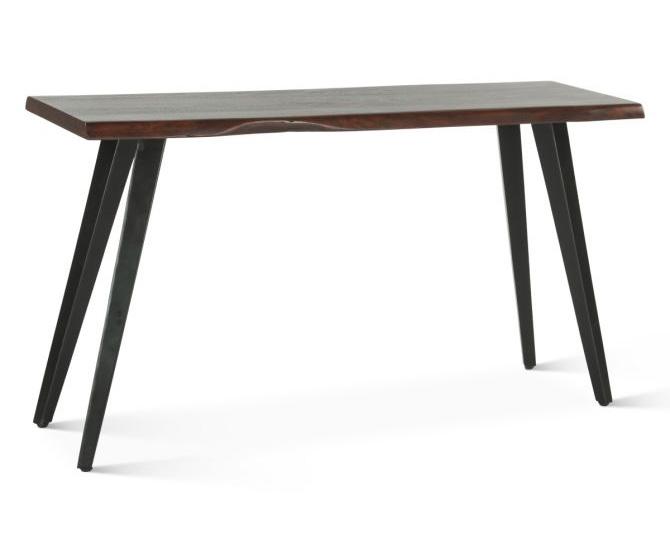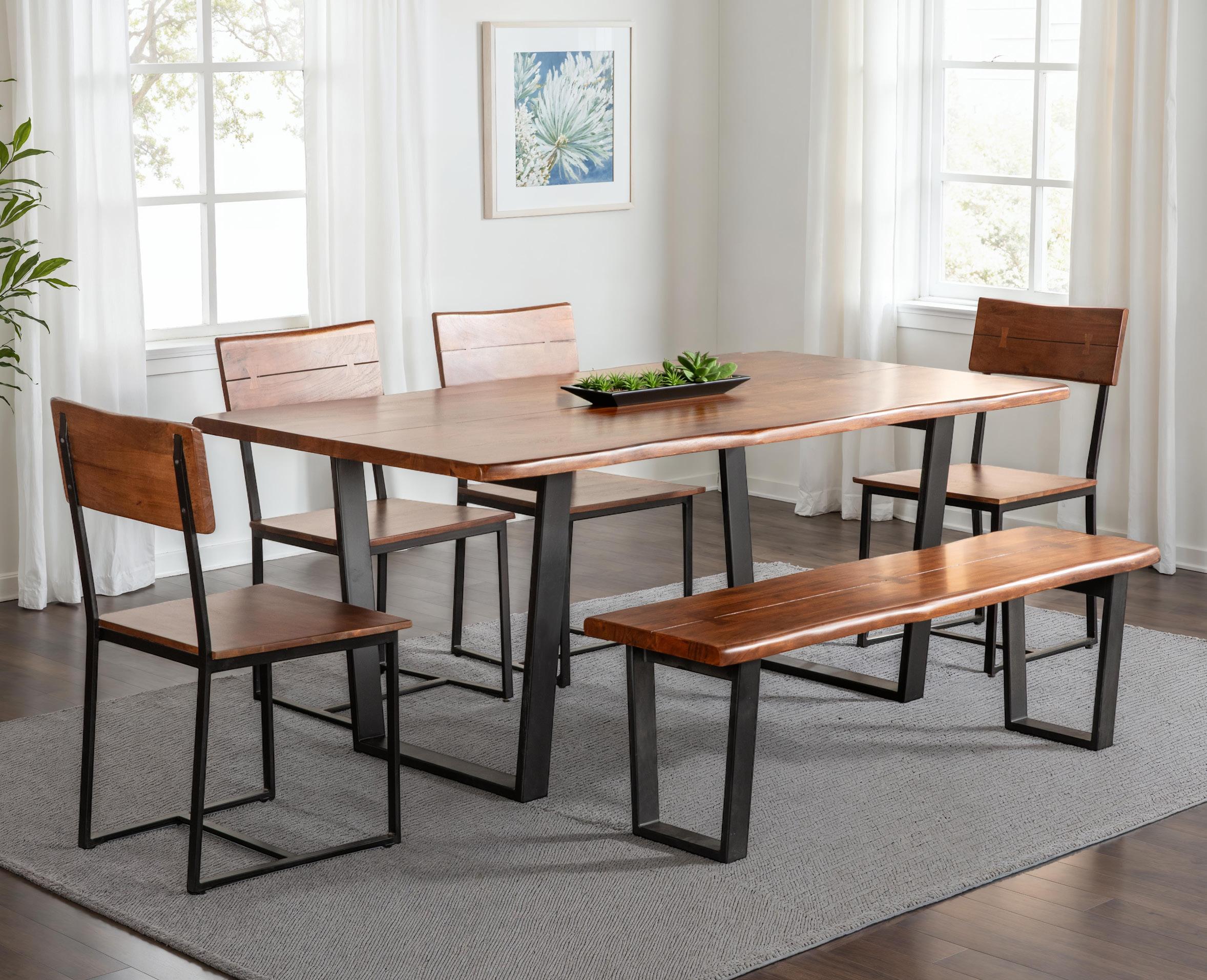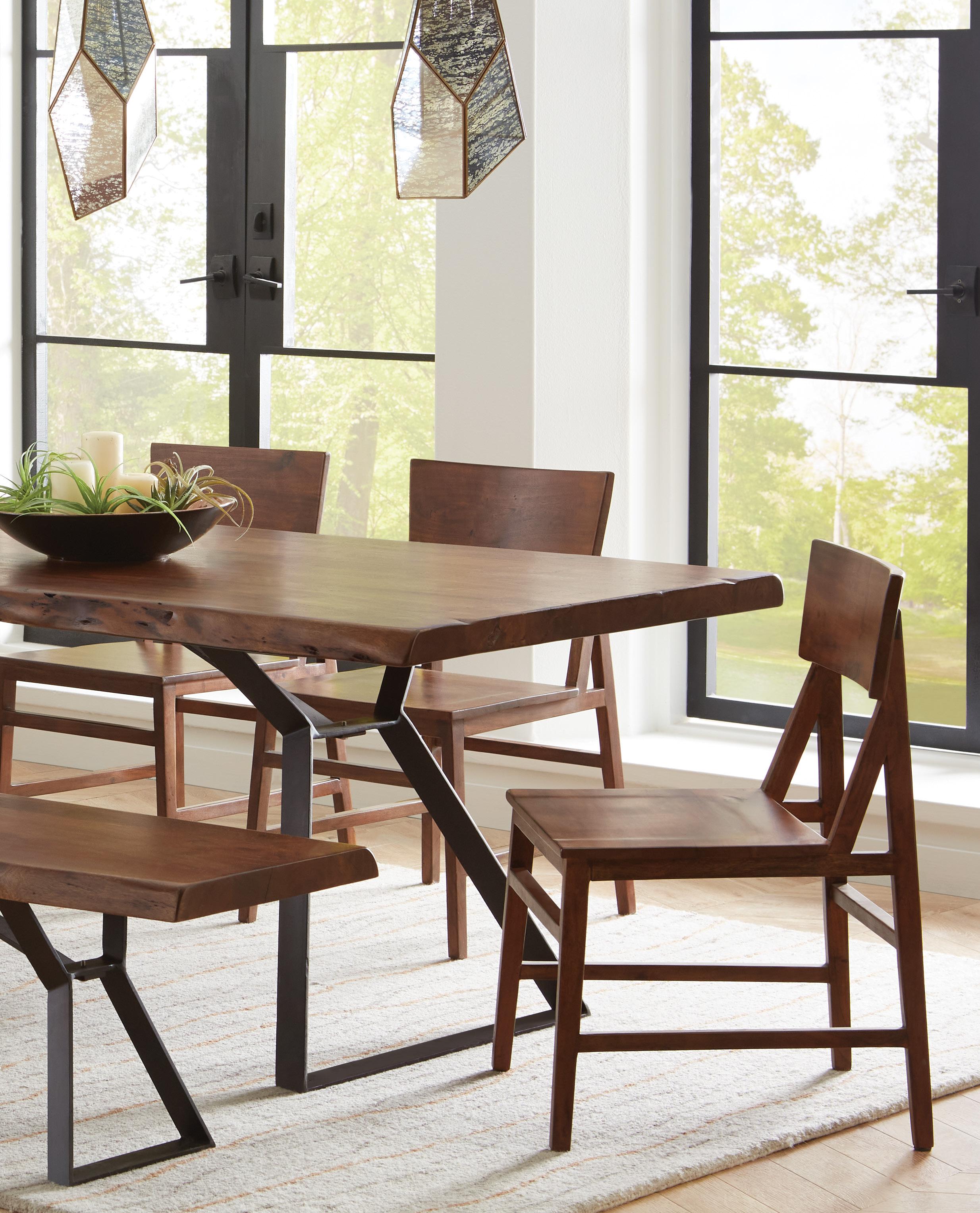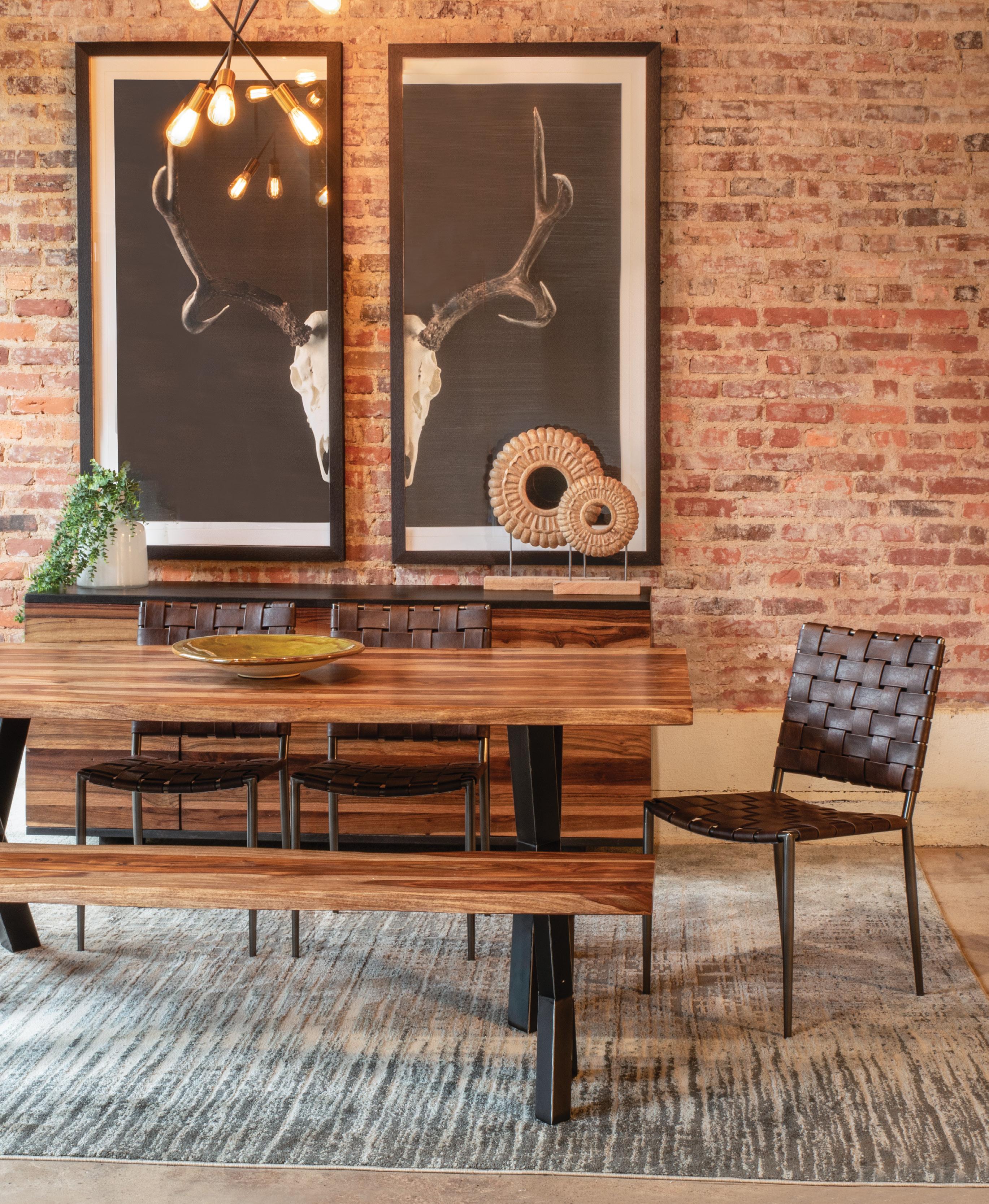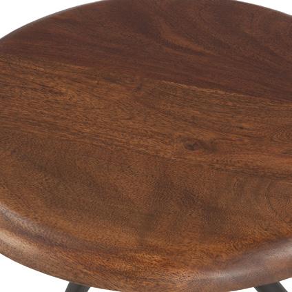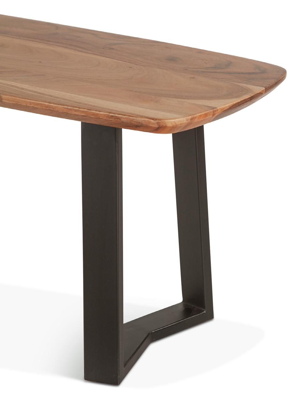 The faux live-edge and deep walnut finish of our Aspen Collection is a warm contrast to their steel bases. Made from solid acacia wood with a water-based eco-friendly finish.
