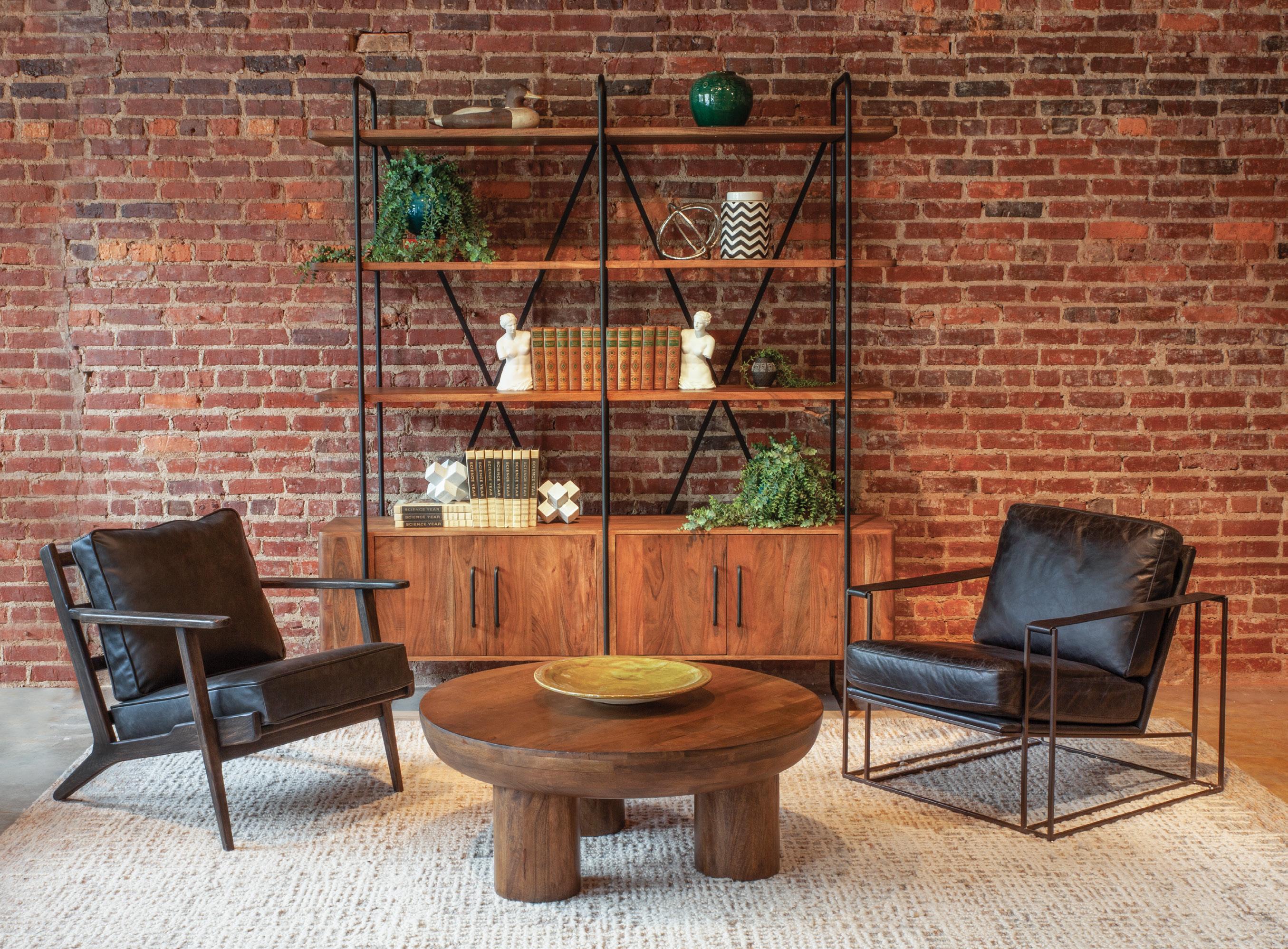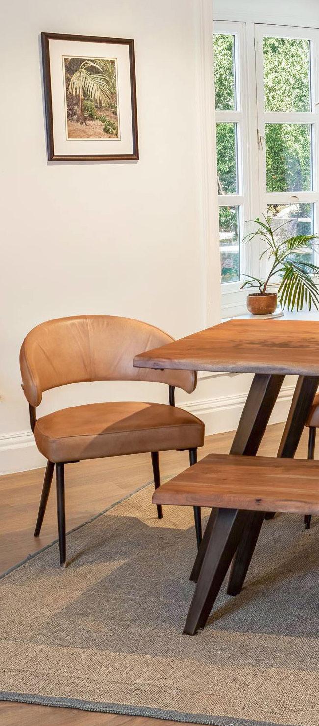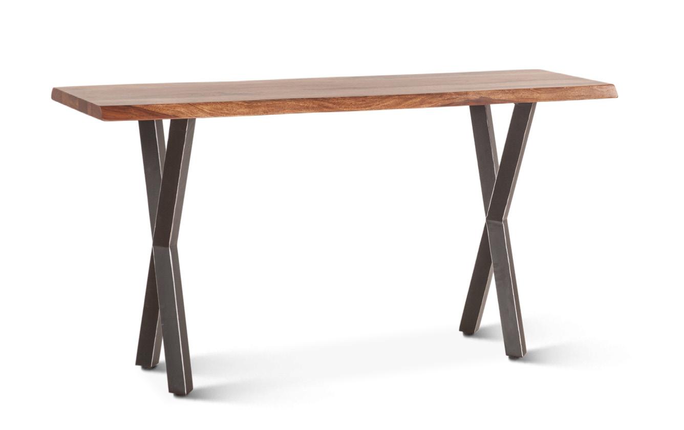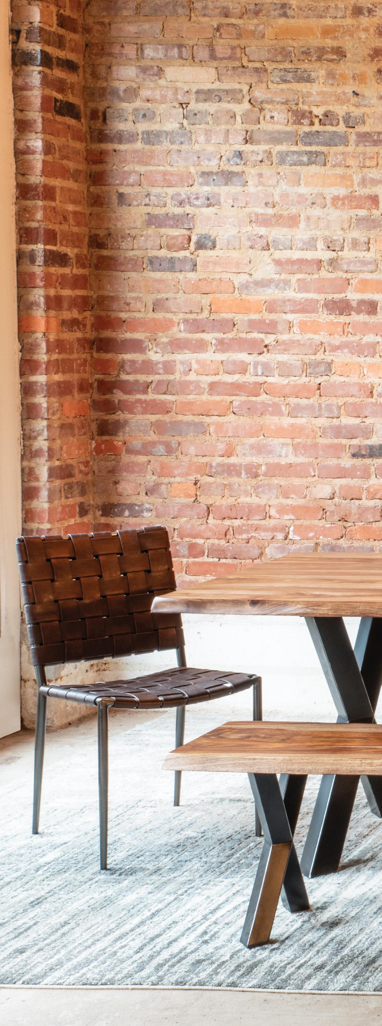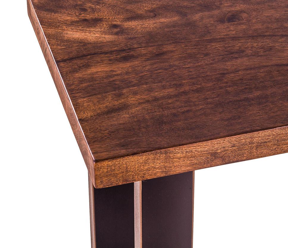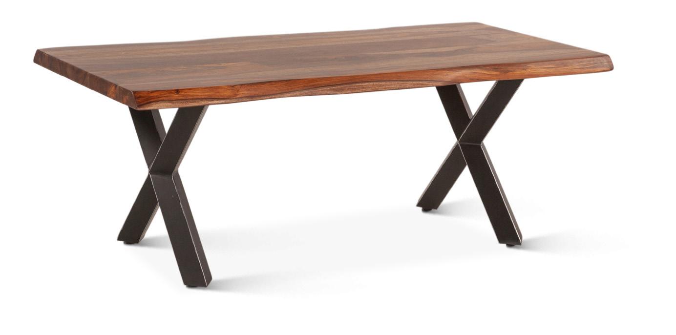 The faux live-edge and deep walnut finish of our Aspen Collection is a warm contrast to their steel bases. Made from solid acacia wood with a water-based eco-friendly finish.