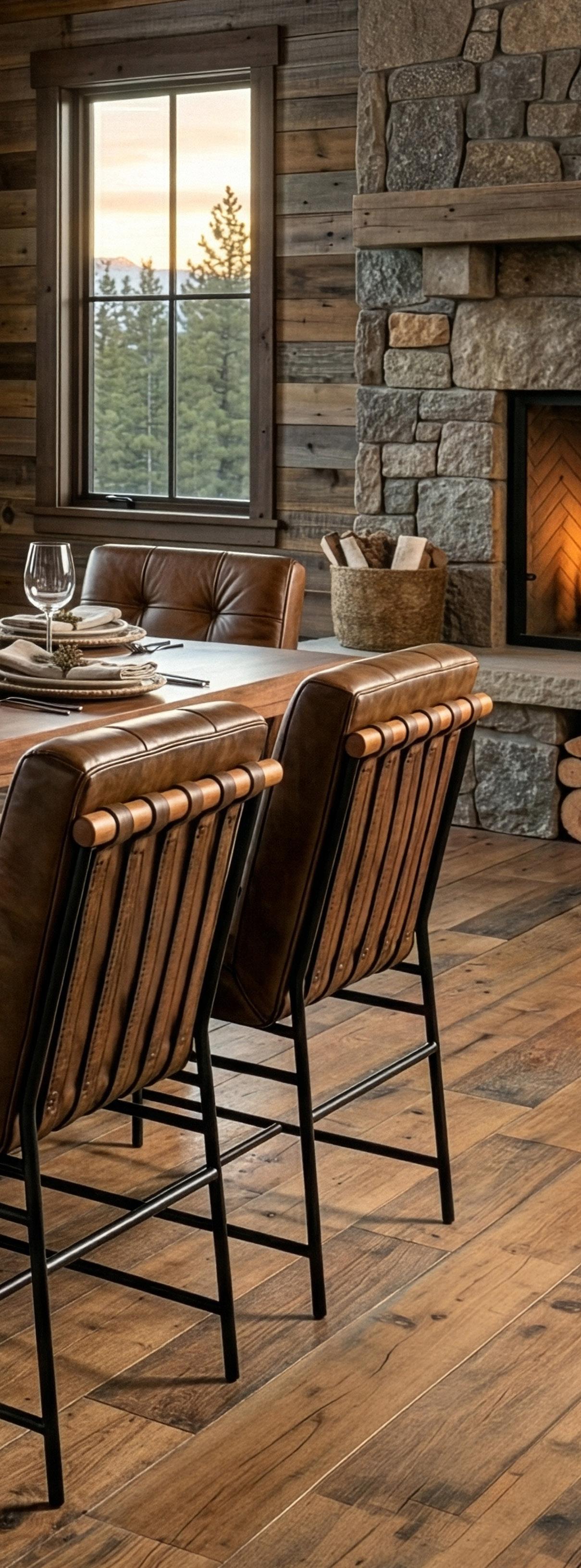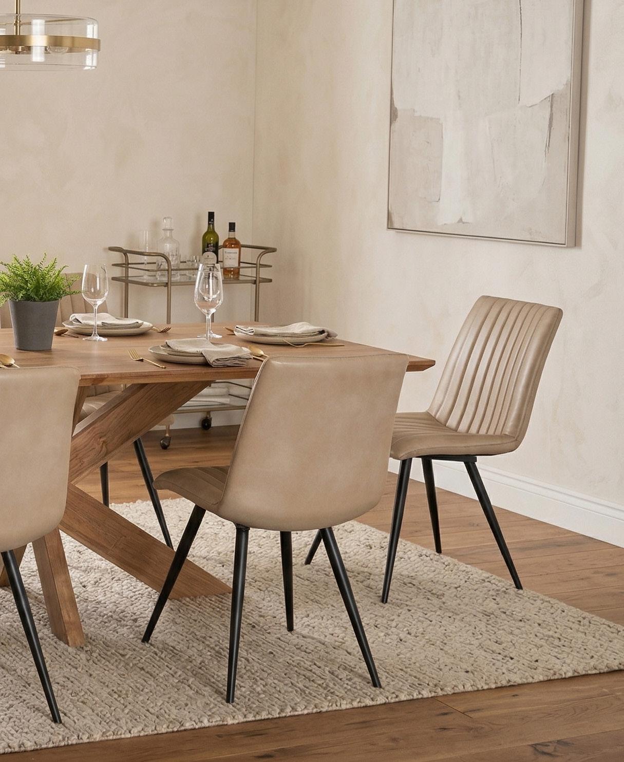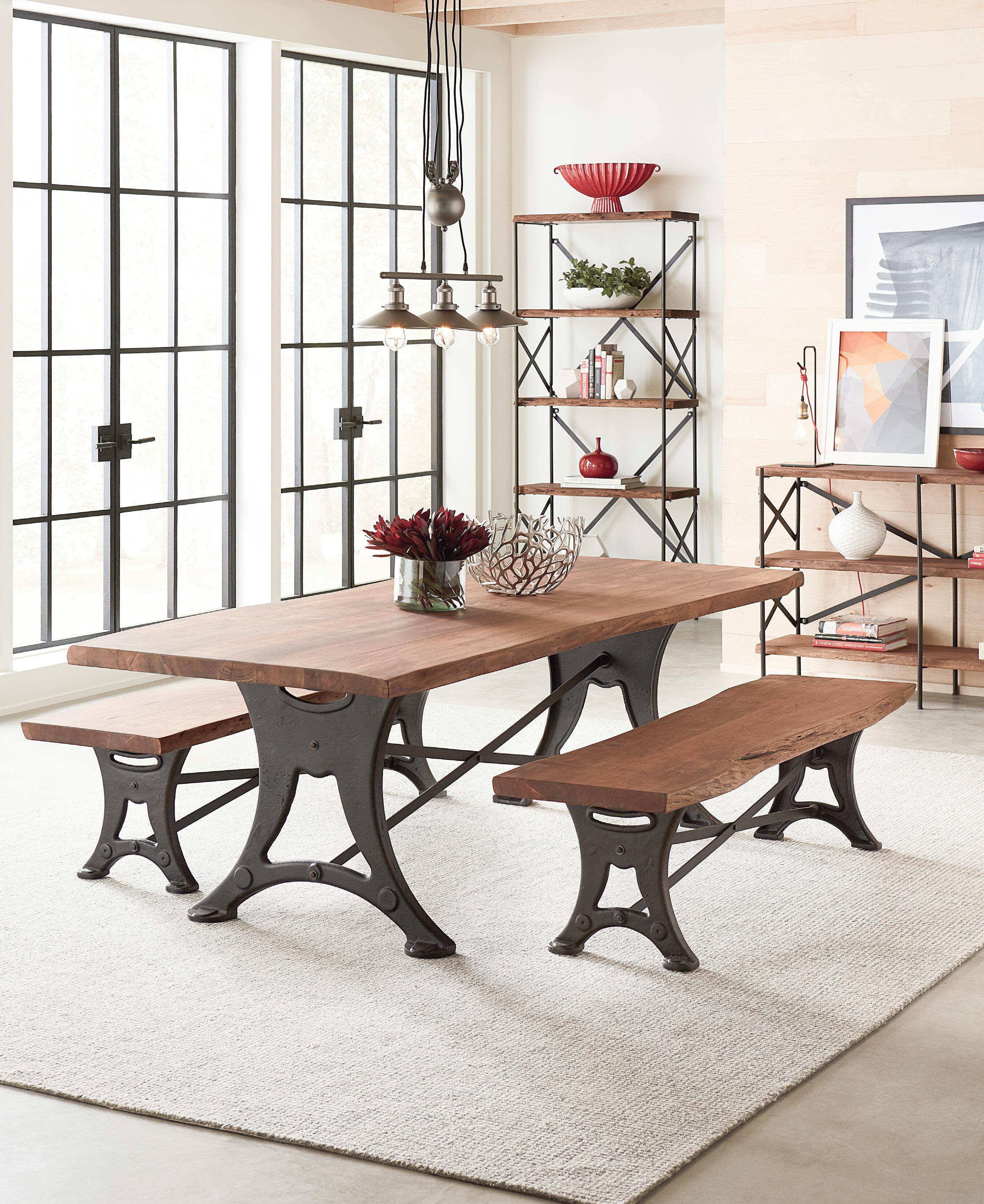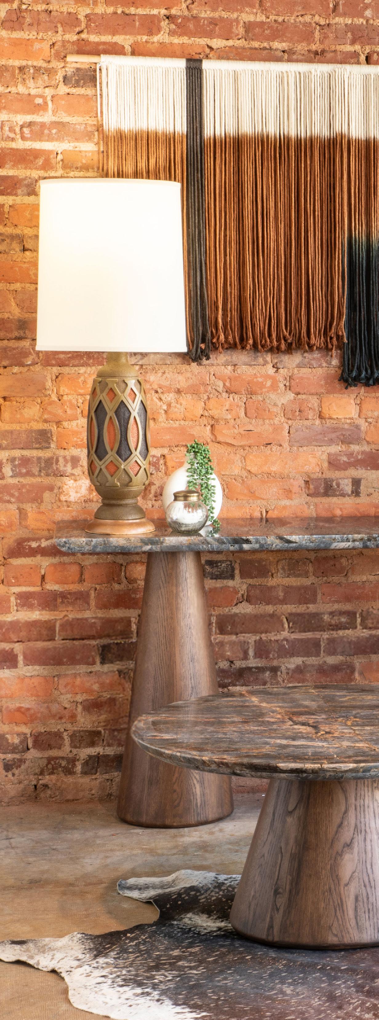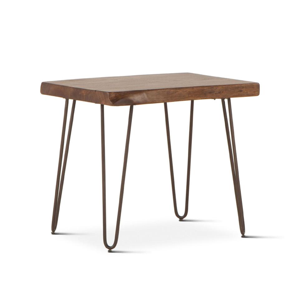 The faux live-edge and deep walnut finish of our Aspen Collection is a warm contrast to their steel bases. Made from solid acacia wood with a water-based eco-friendly finish.