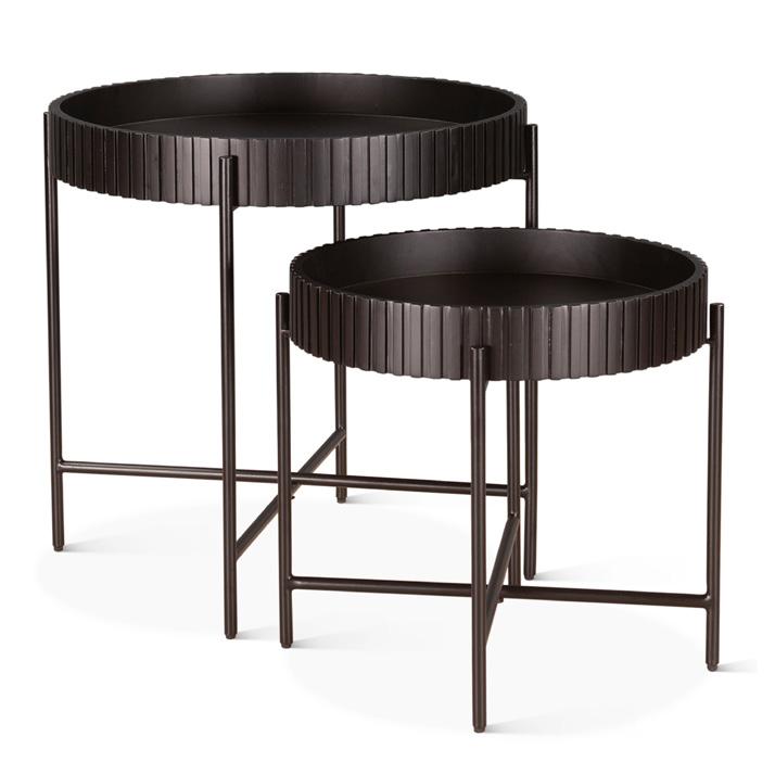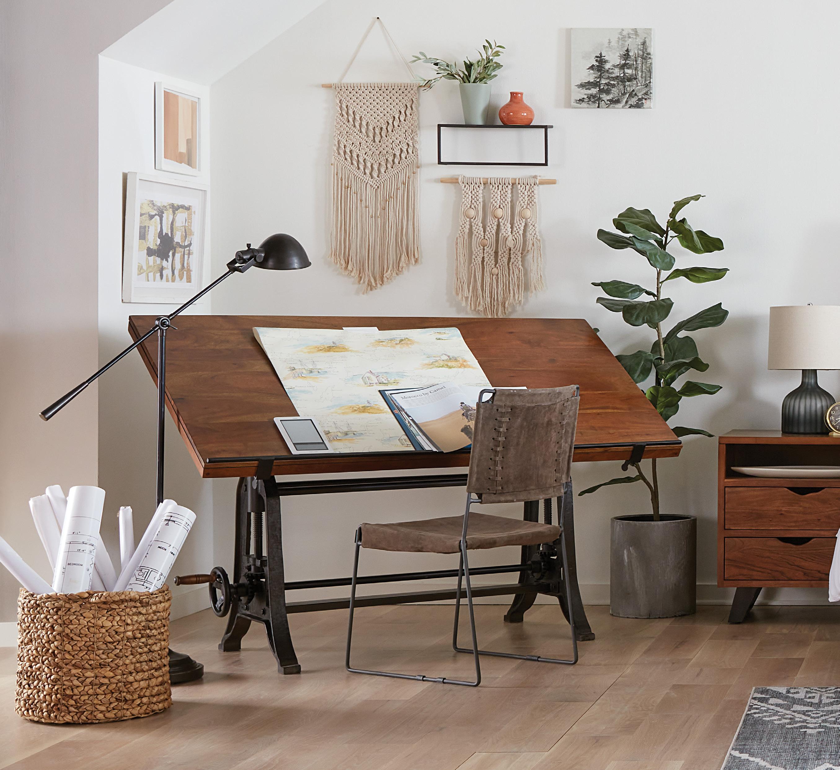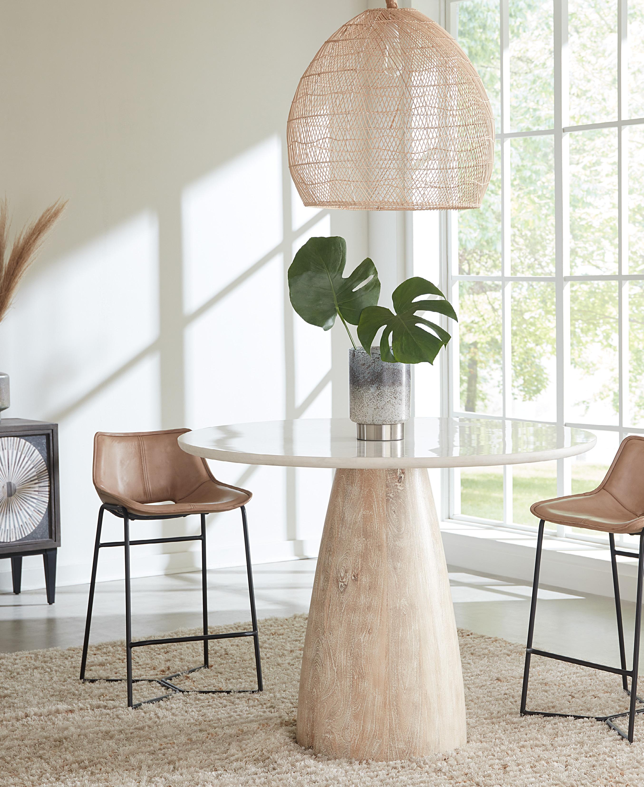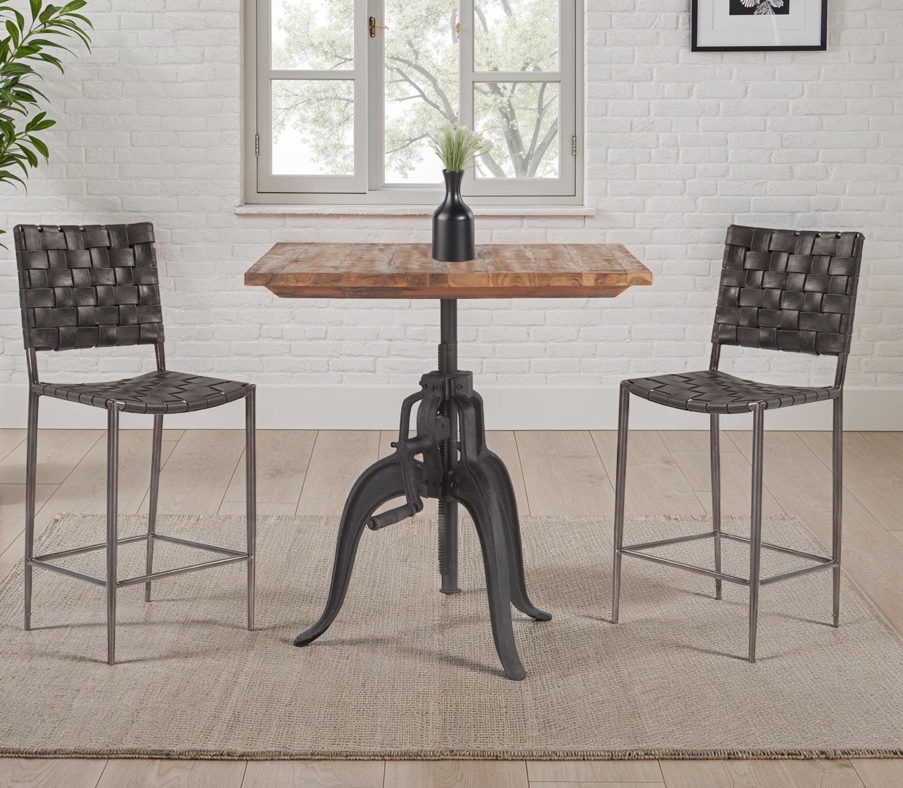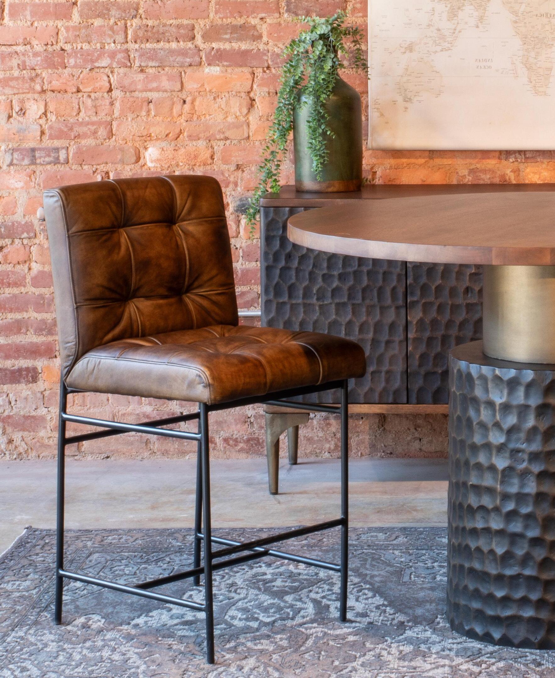 The faux live-edge and deep walnut finish of our Aspen Collection is a warm contrast to their steel bases. Made from solid acacia wood with a water-based eco-friendly finish.