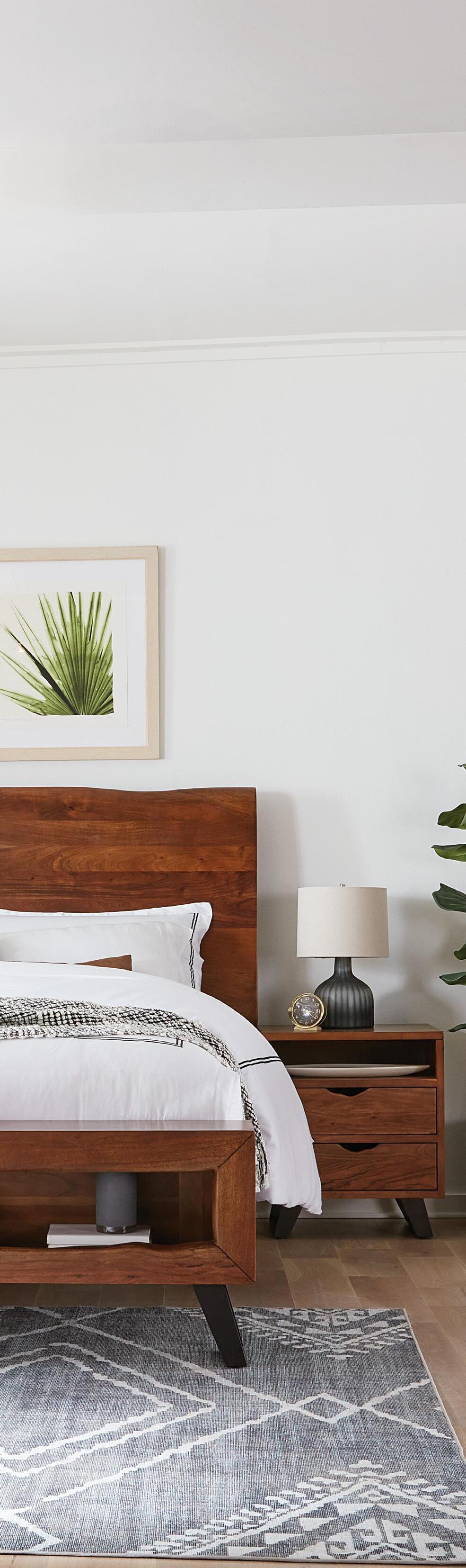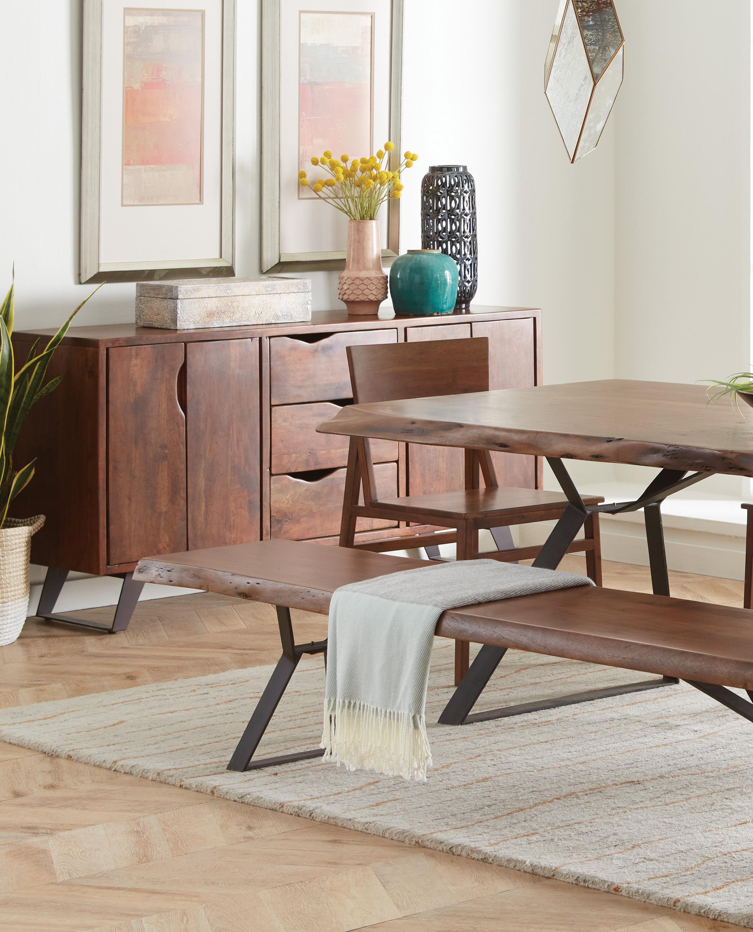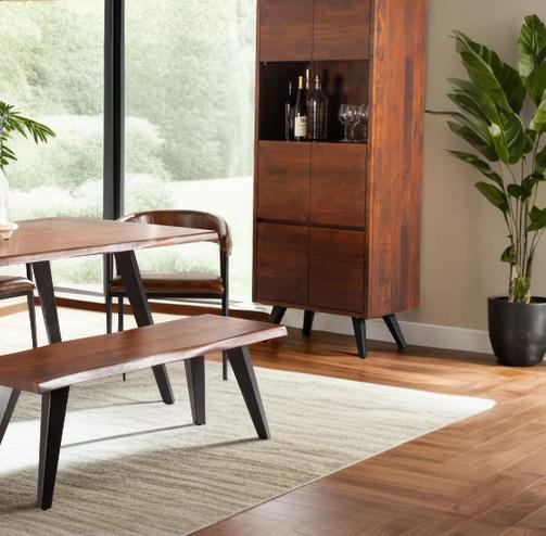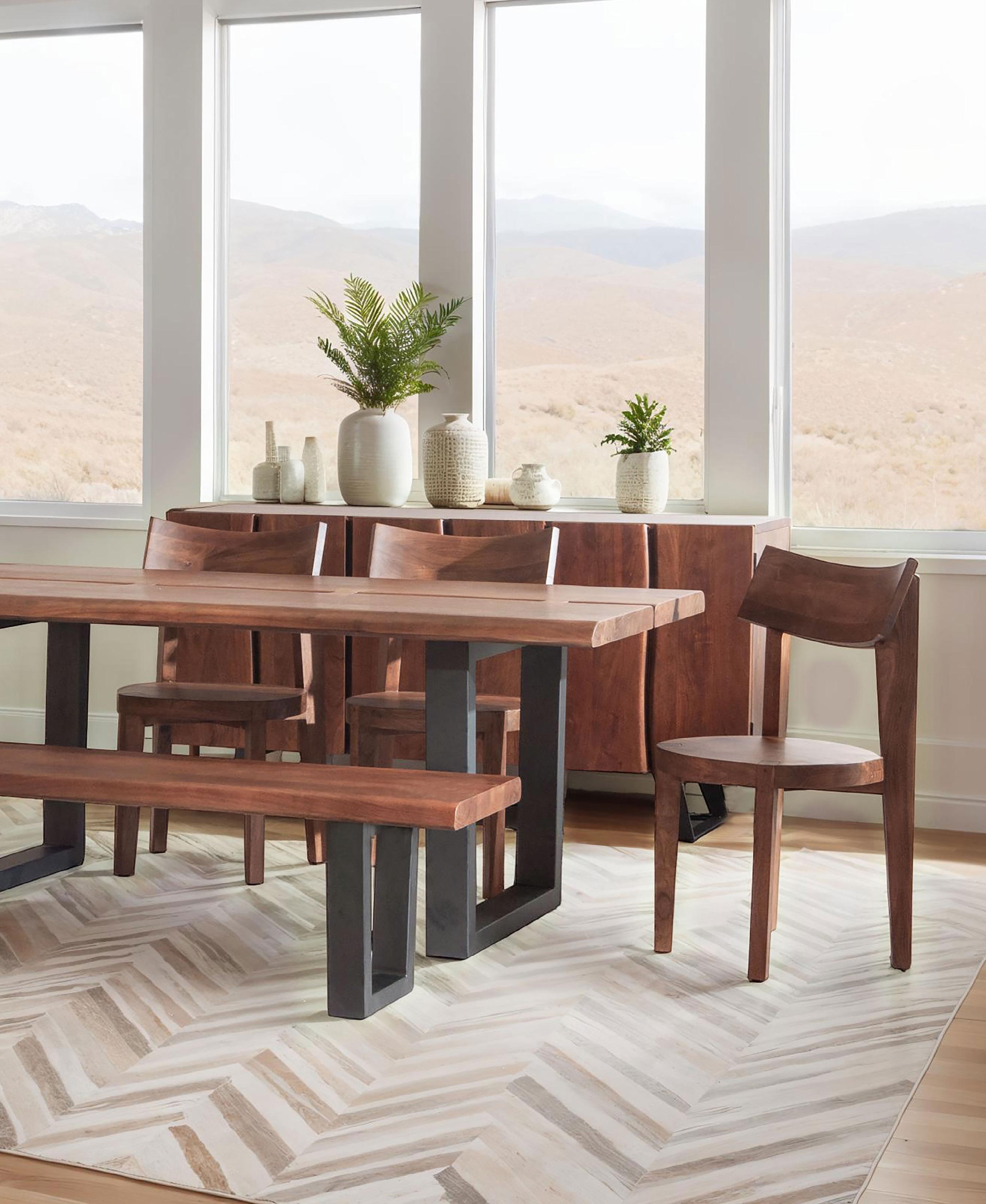 The Piedmont collection features clean, minimal lines that highlight the natural beauty of solid acacia wood. Its rich, smooth coffee bean finish enhances the organic grain, offering a warm, timeless appeal.