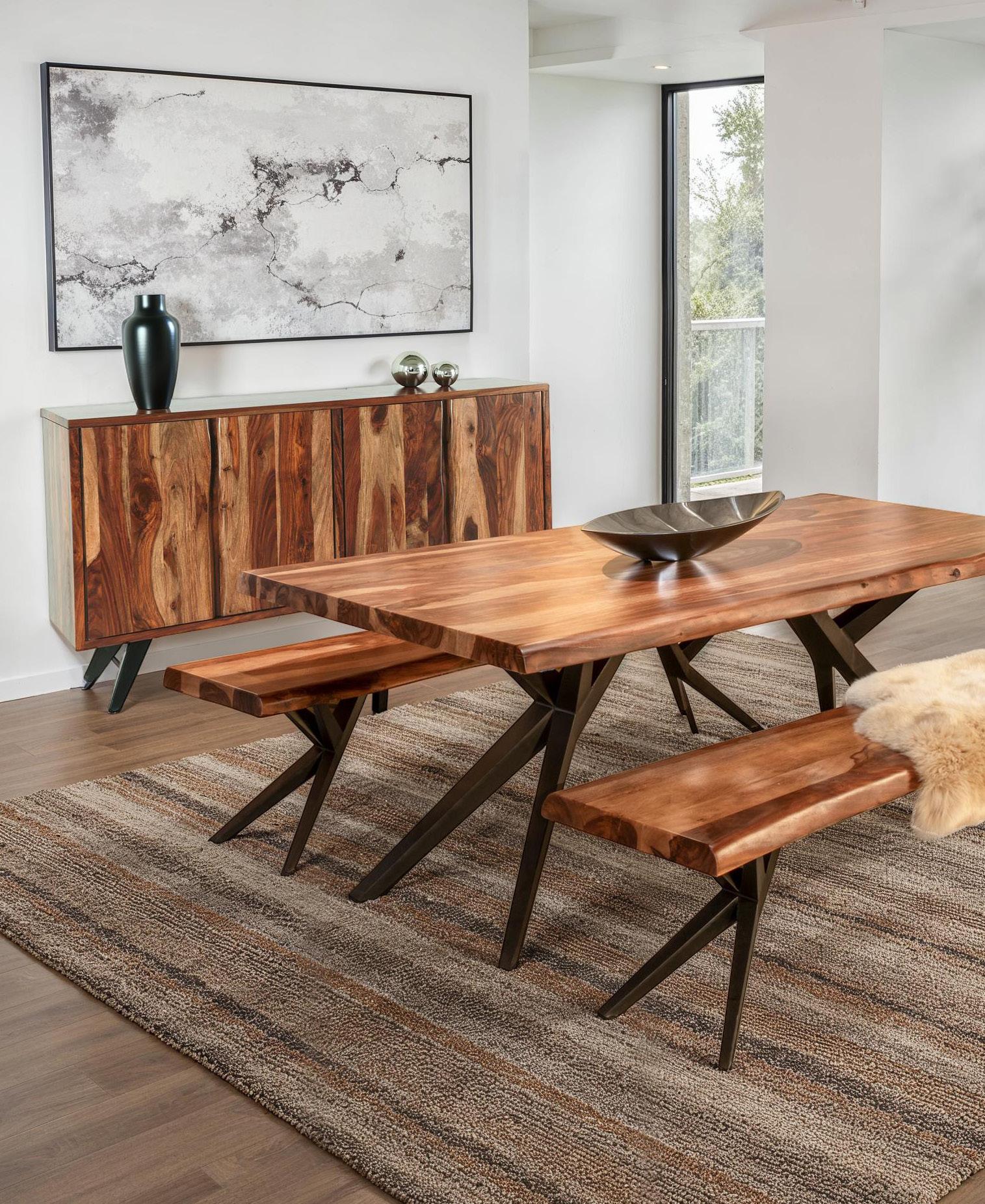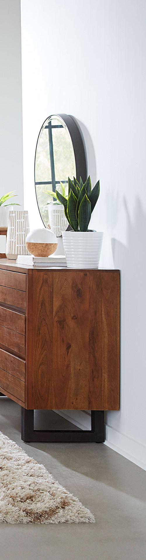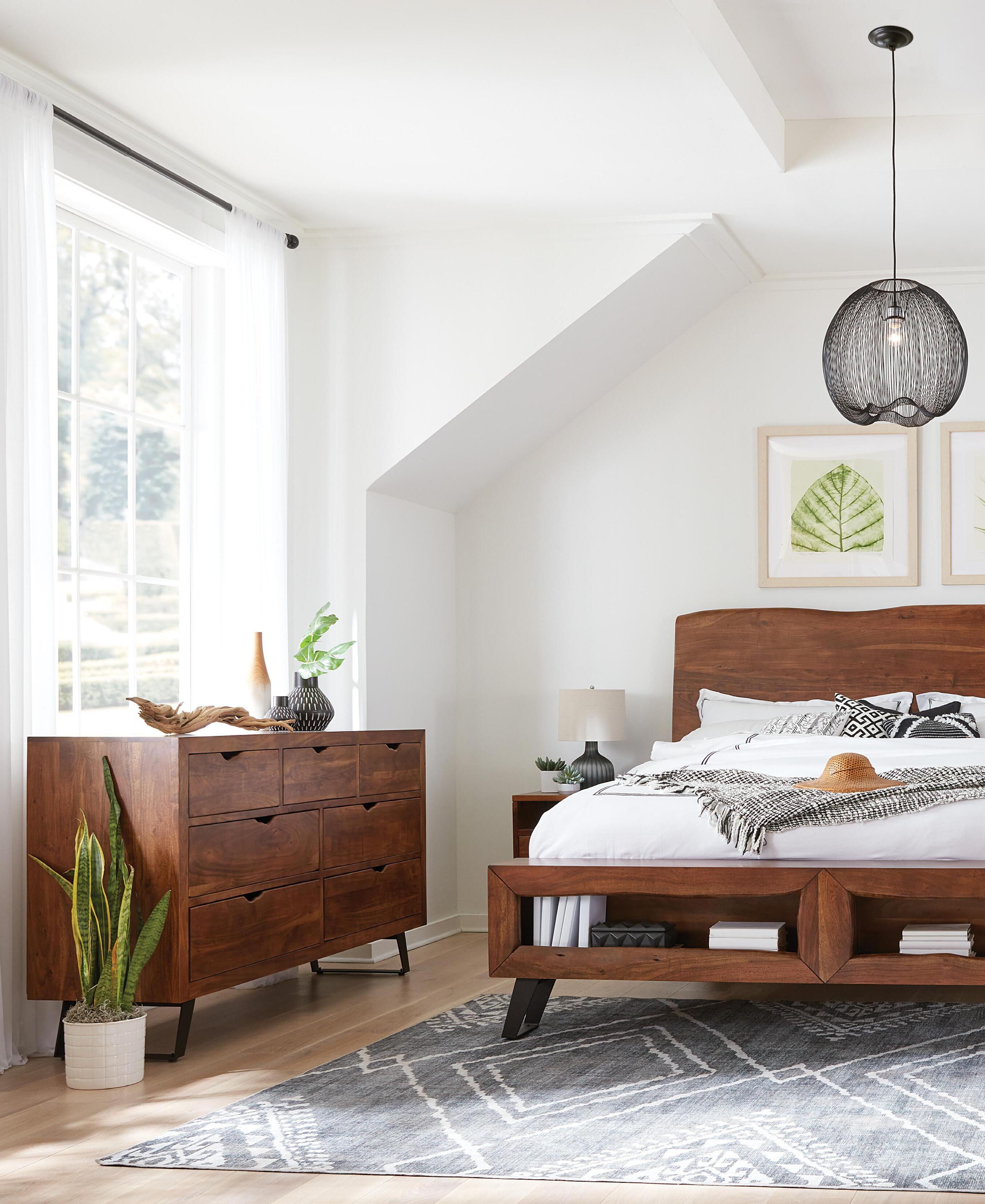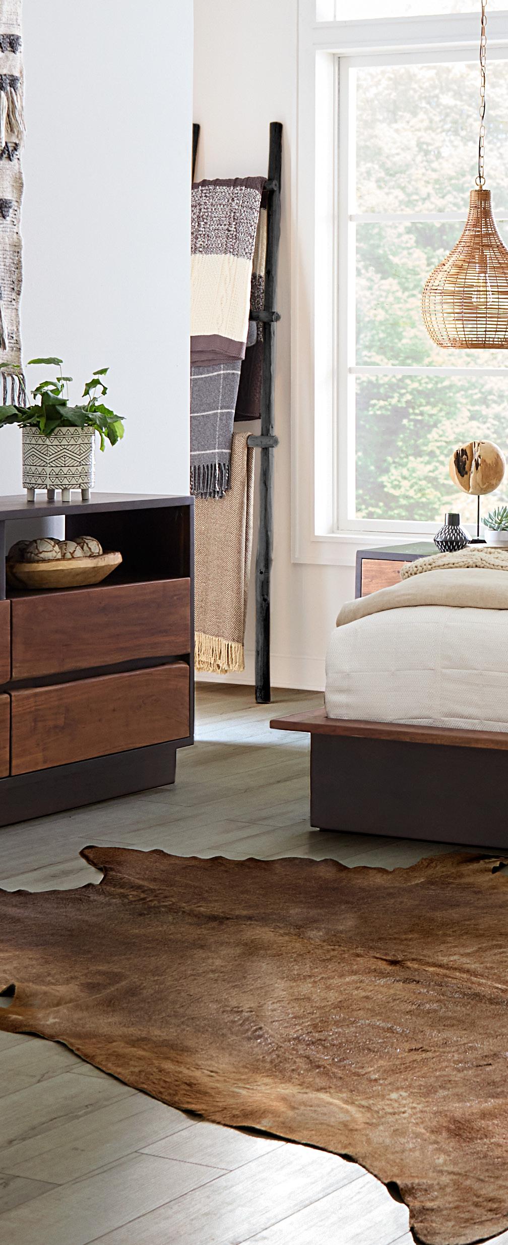 The Piedmont collection features clean, minimal lines that highlight the natural beauty of solid acacia wood. Its rich, smooth coffee bean finish enhances the organic grain, offering a warm, timeless appeal.