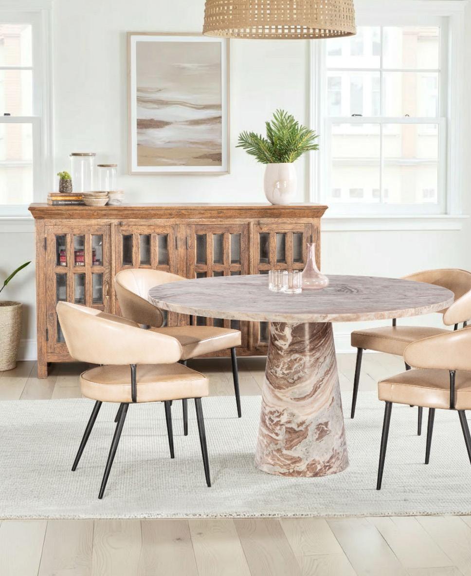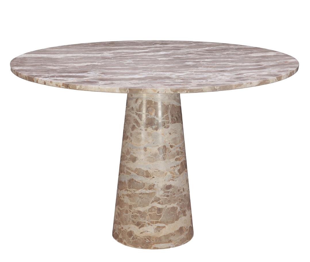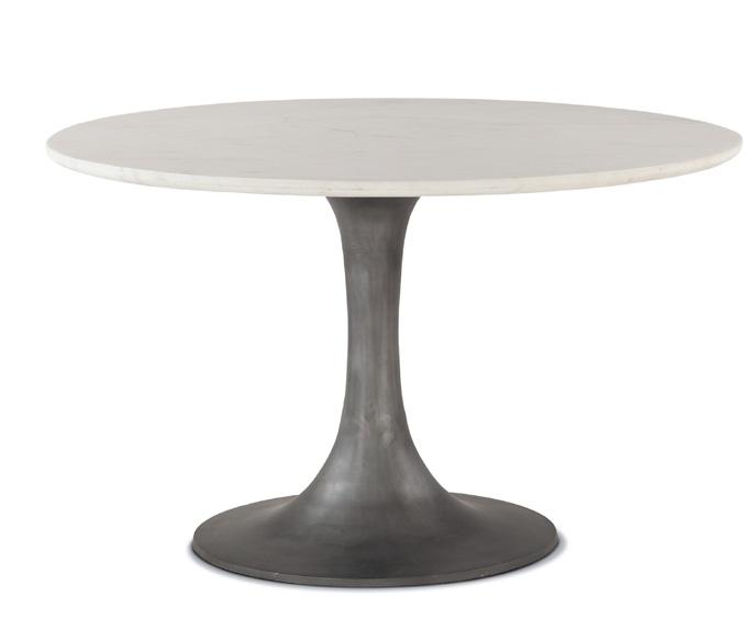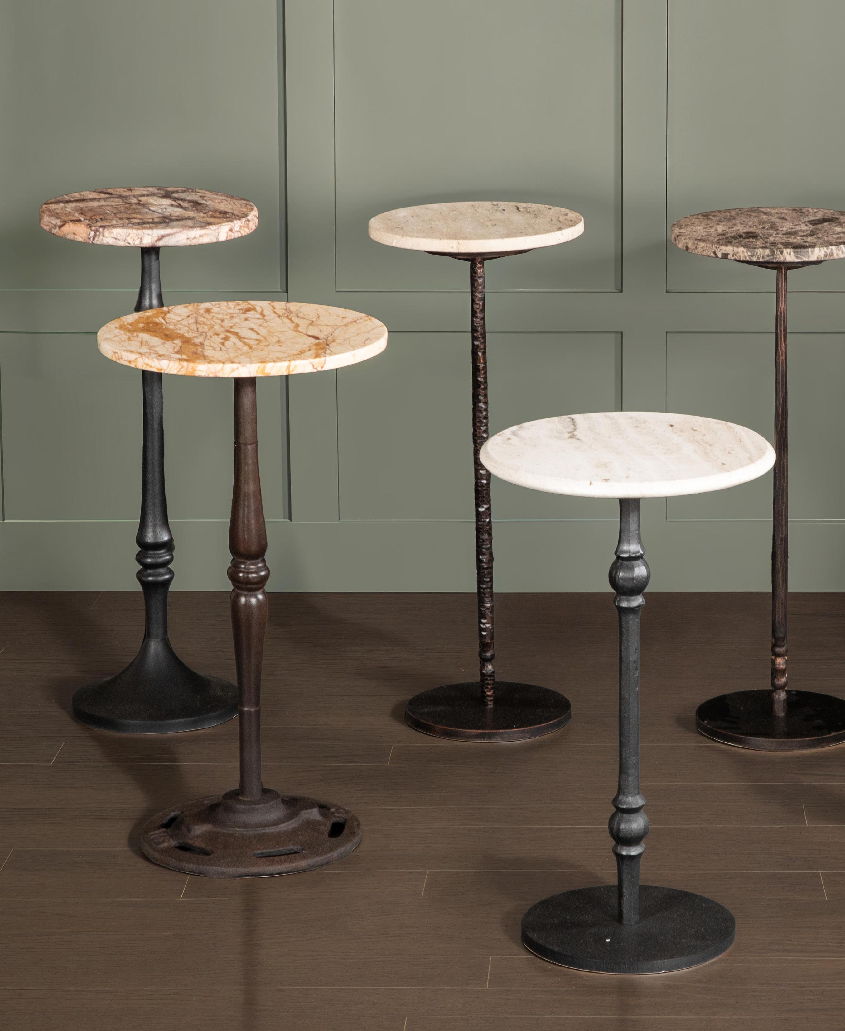 Marble is a metamorphic rock composed of recrystallized carbonate minerals. Hand polished marble table tops create a sleek, Modern look.