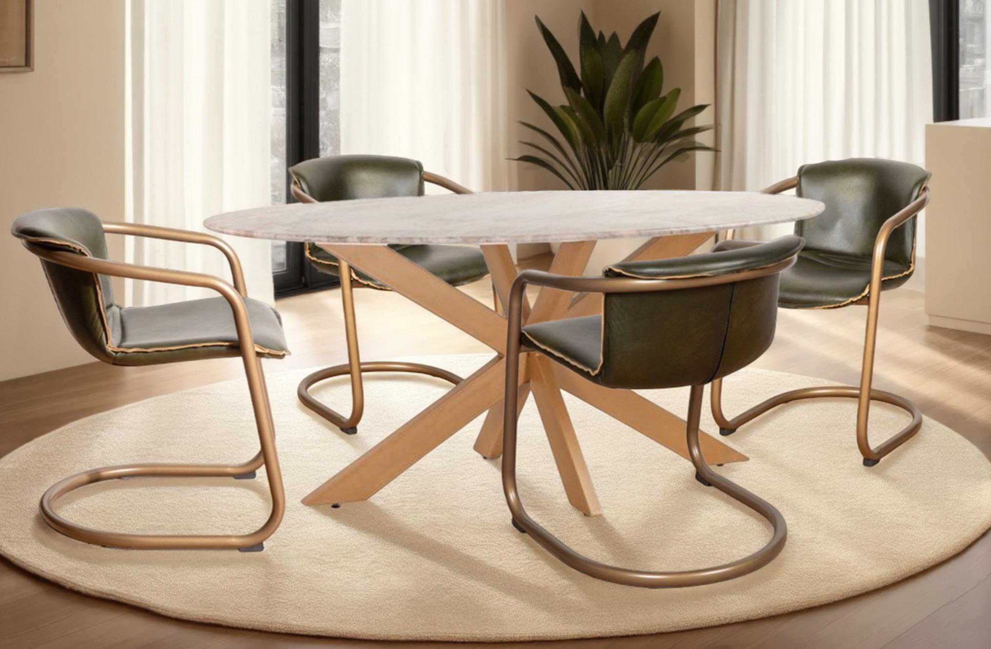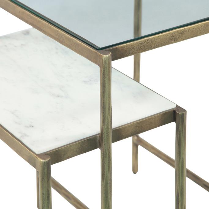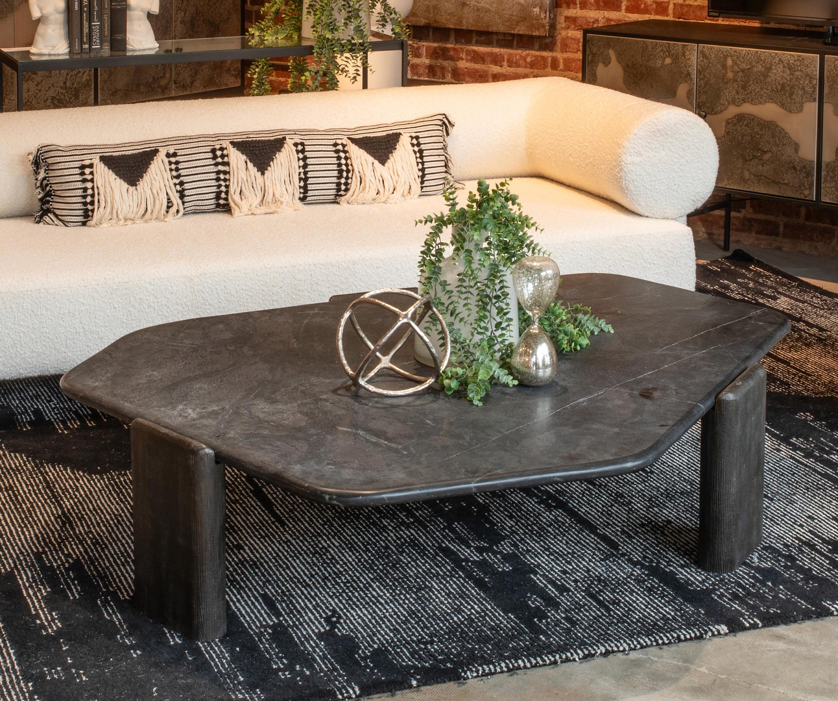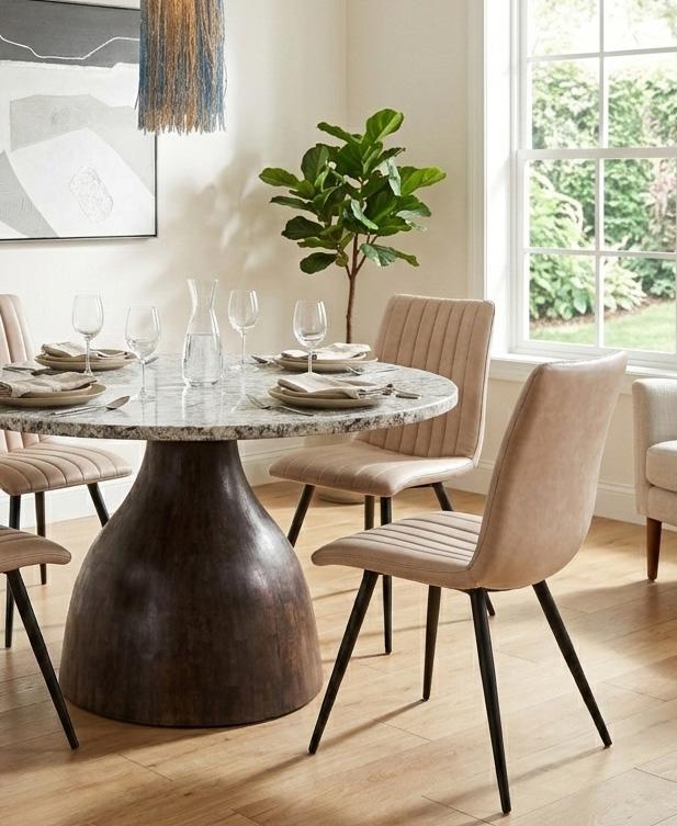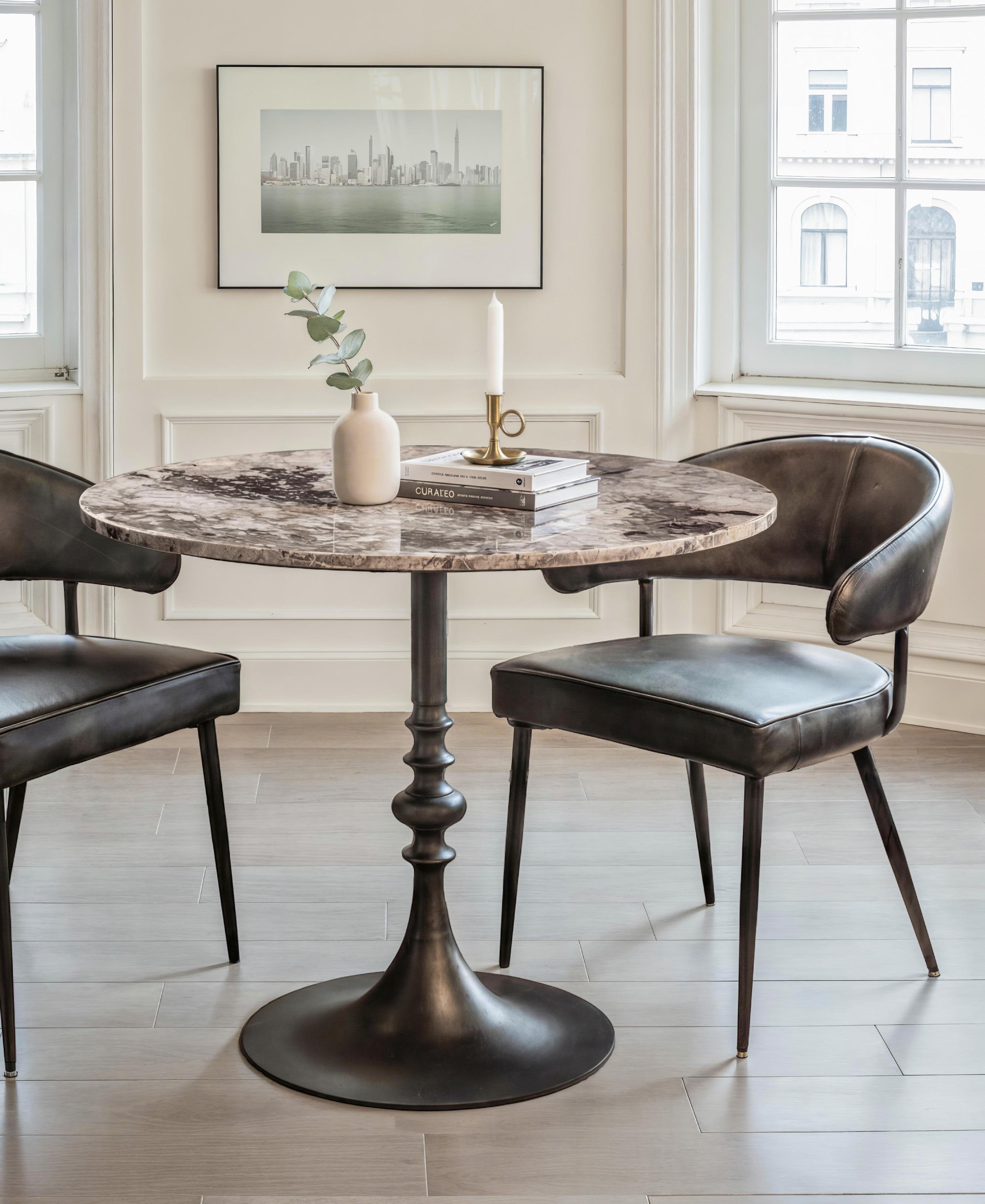 Marble is a metamorphic rock composed of recrystallized carbonate minerals. Hand polished marble table tops create a sleek, Modern look.