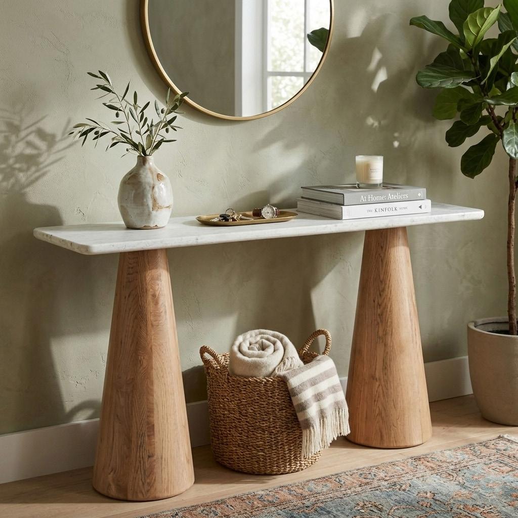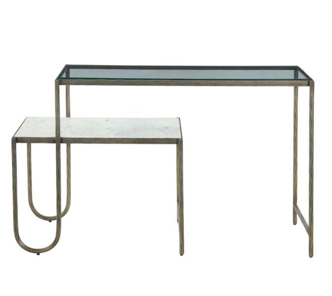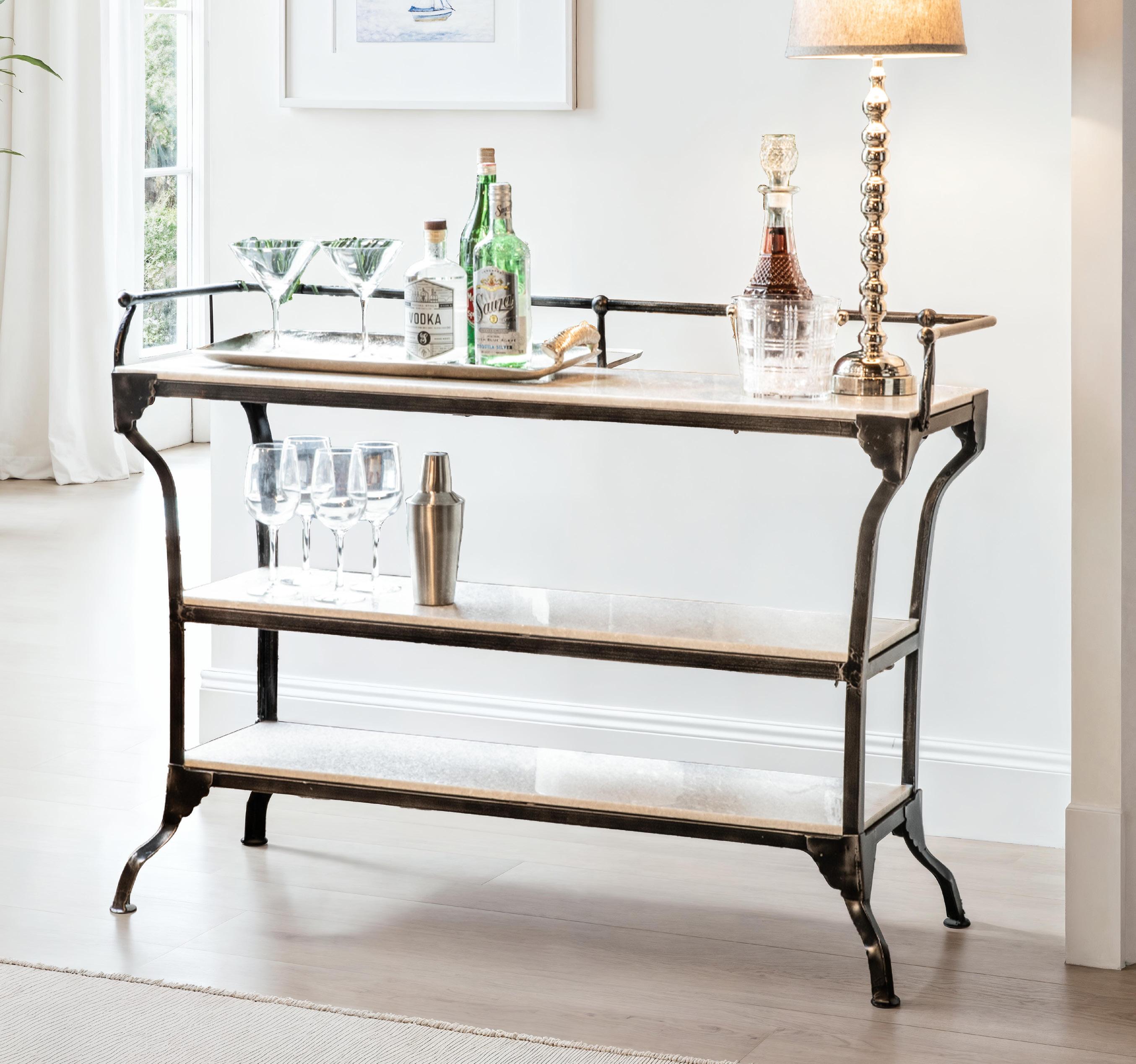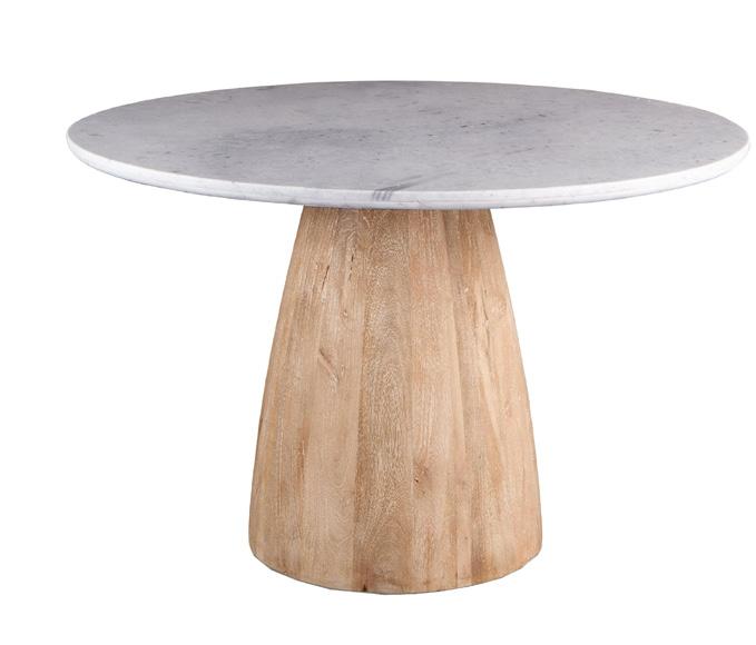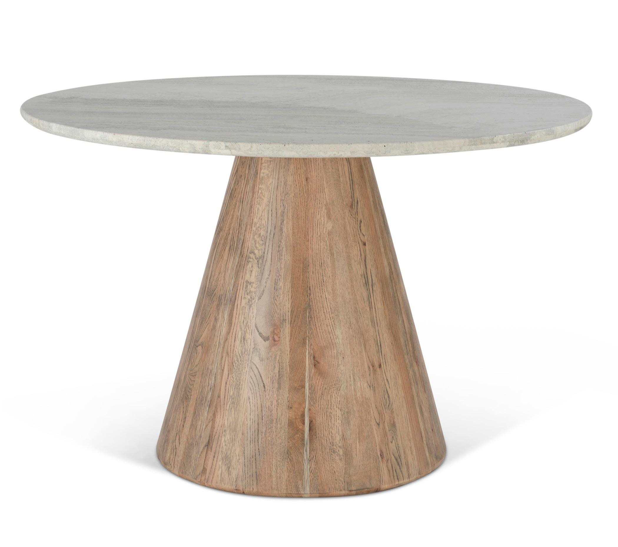 Marble is a metamorphic rock composed of recrystallized carbonate minerals. Hand polished marble table tops create a sleek, Modern look.