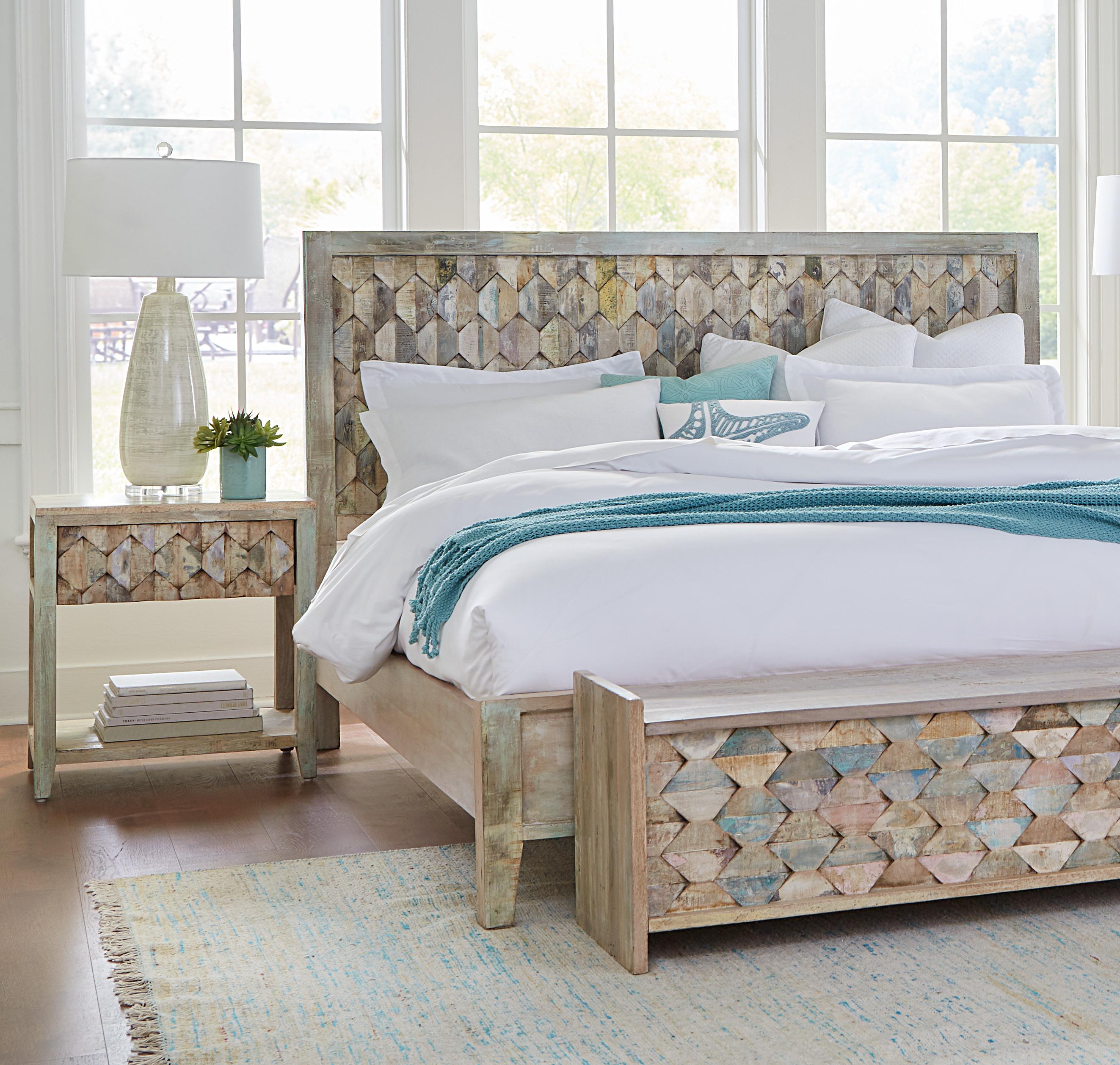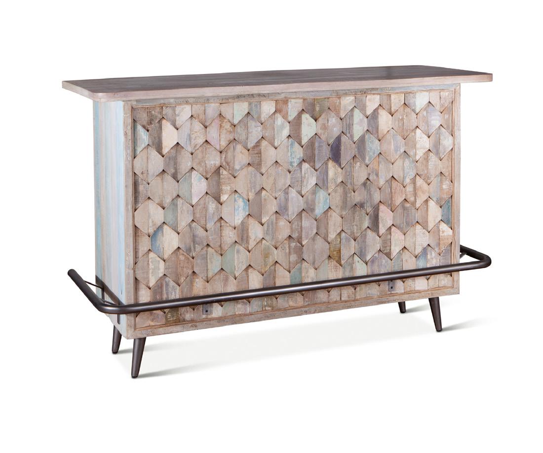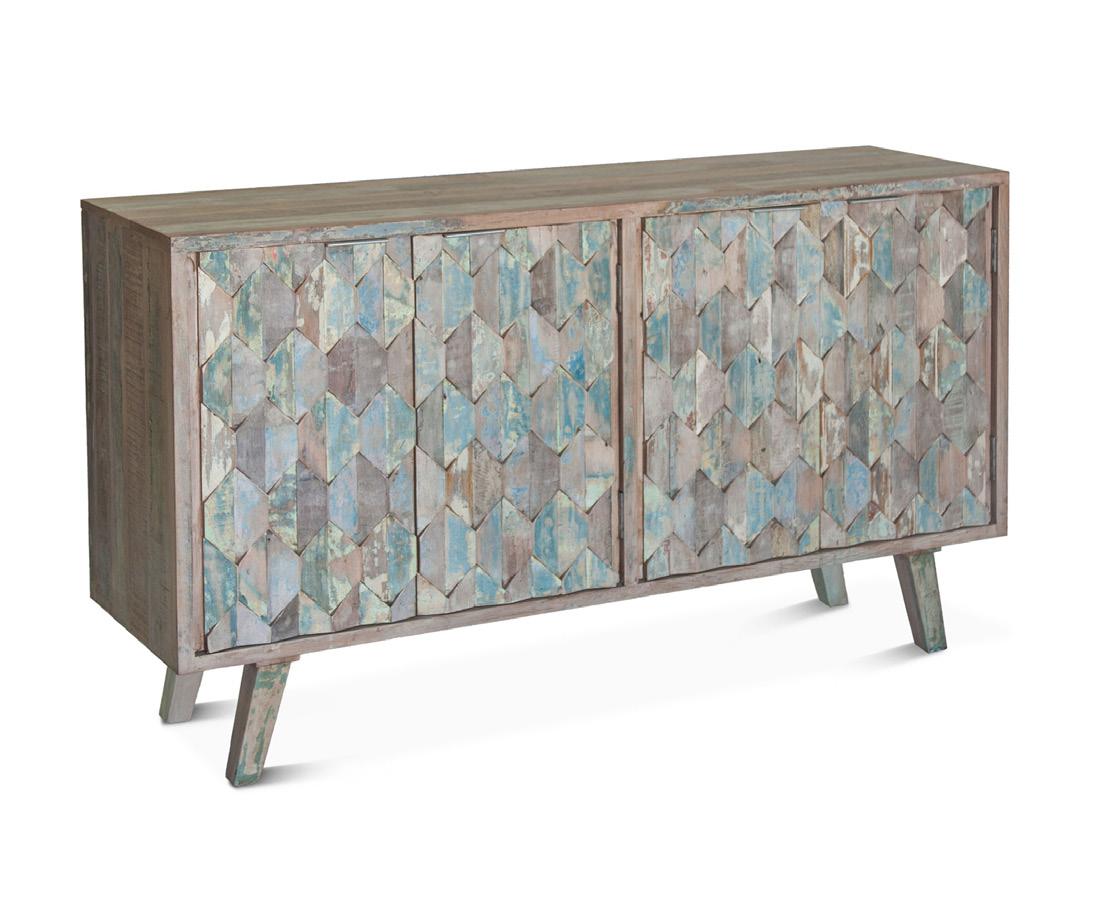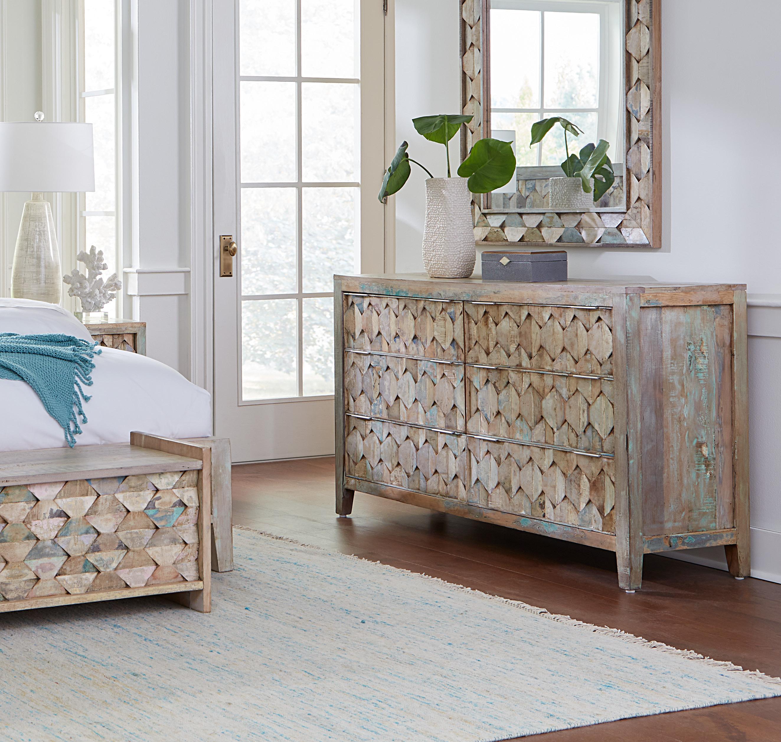 The Ibiza Collection is constructed entirely from reclaimed teak and other hardwoods ensuring that each piece is unique. Mosaic geometric patterns accentuate the bleached coastal finish and rustic charm.