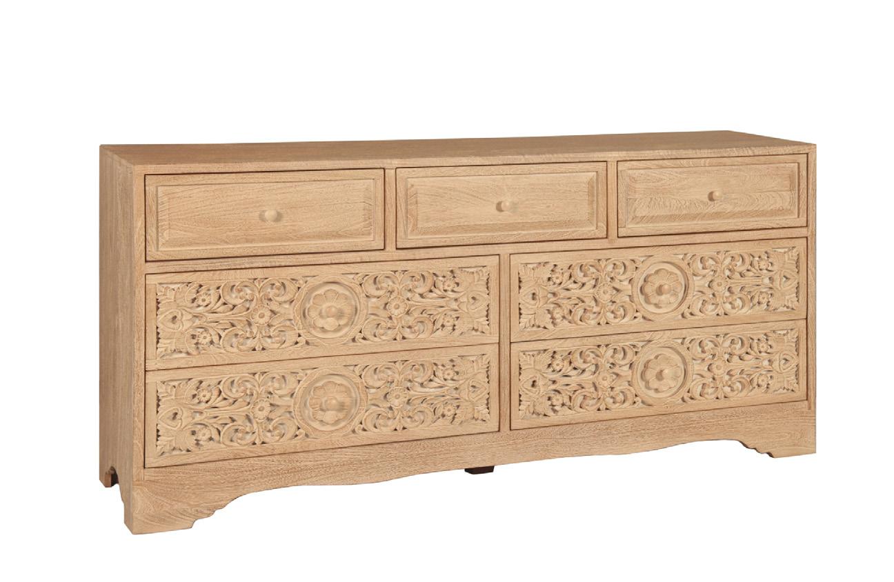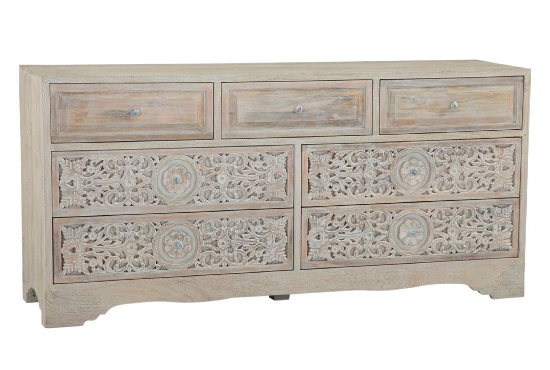 B. Taj 71" Dresser with Plinth Base in Hand Carved Whitewash (71 x 19 x 34) FTJ-DR71WW