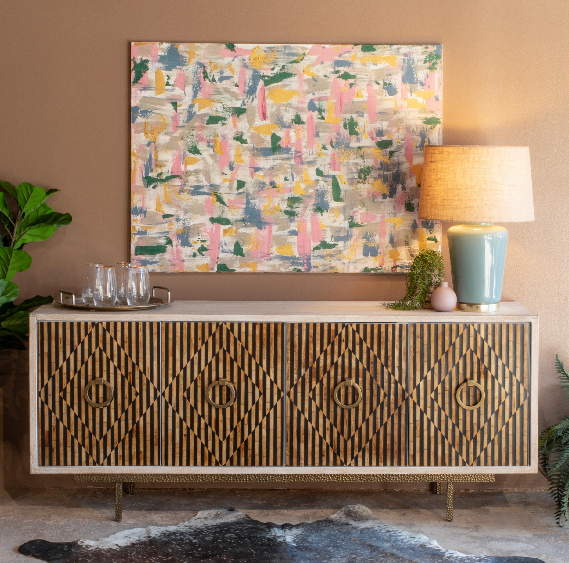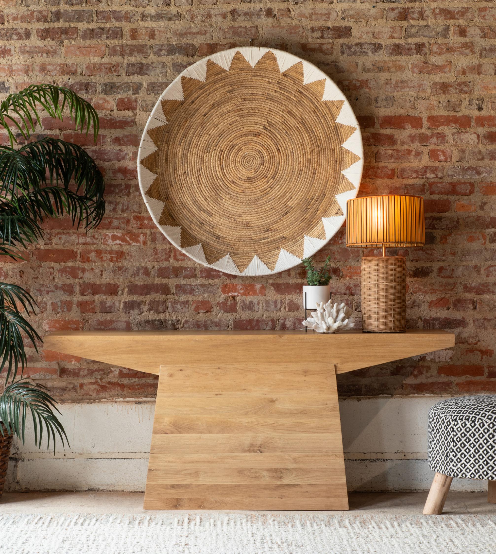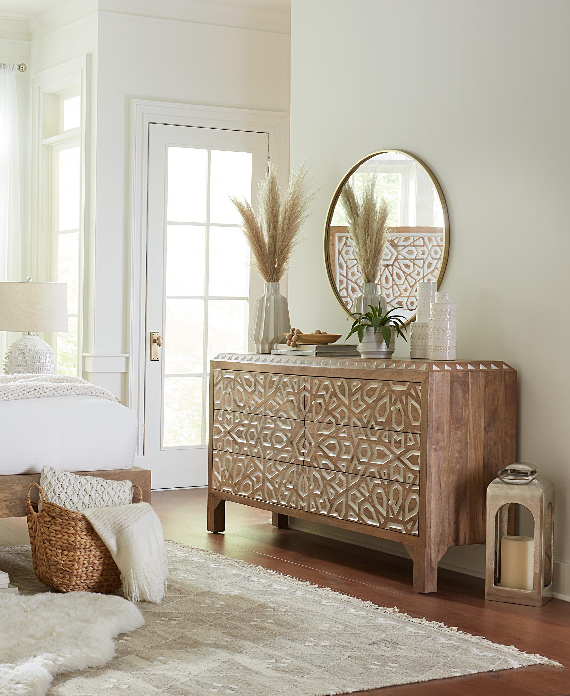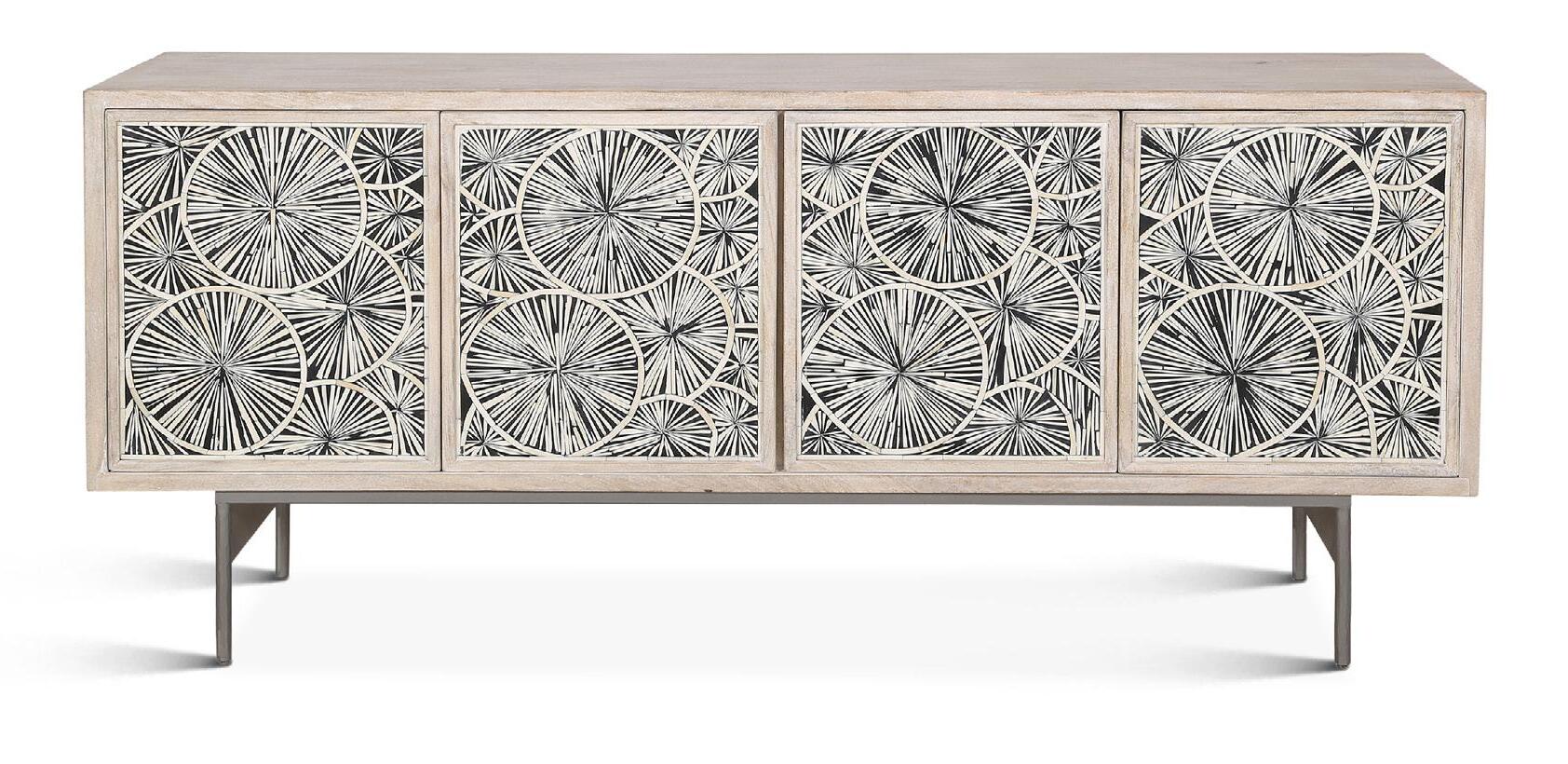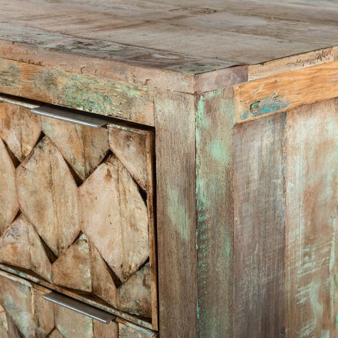 Inspired by the whitewashed hillside medinas and the Dar el Makhzen palace nestled in the hillside overlooking the Mediterranean, the Tangiers collection takes geometrically patterned surfaces accentuated with white washed relief, all on solid mango wood construction. Each piece is hand made and exhibits the unique grains and pigments of the naturally stained wood.