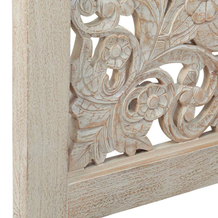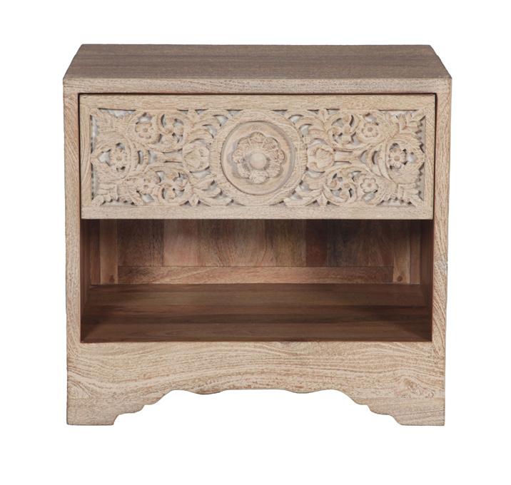 Inspired by Indian culture and architecture, the Taj collection is crafted from sustainable mango wood. The floral and geometric patterns are hand carved, then finished with an eco-friendly water based laquer.